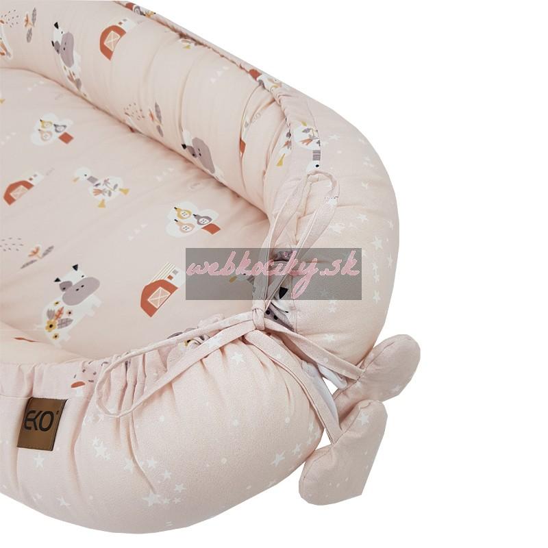 EKO Hniezdo pre bábätko obojstranné bavlnené My farm Stars Powder pink 90x60 cm