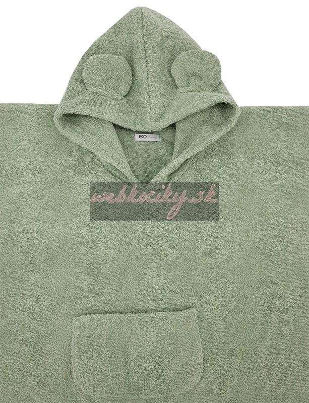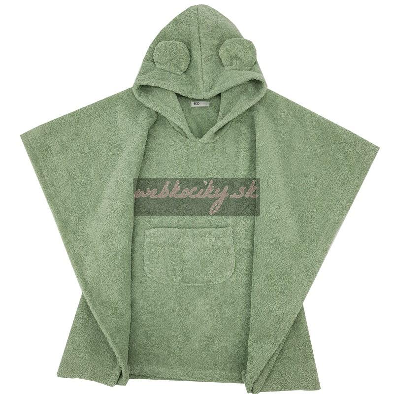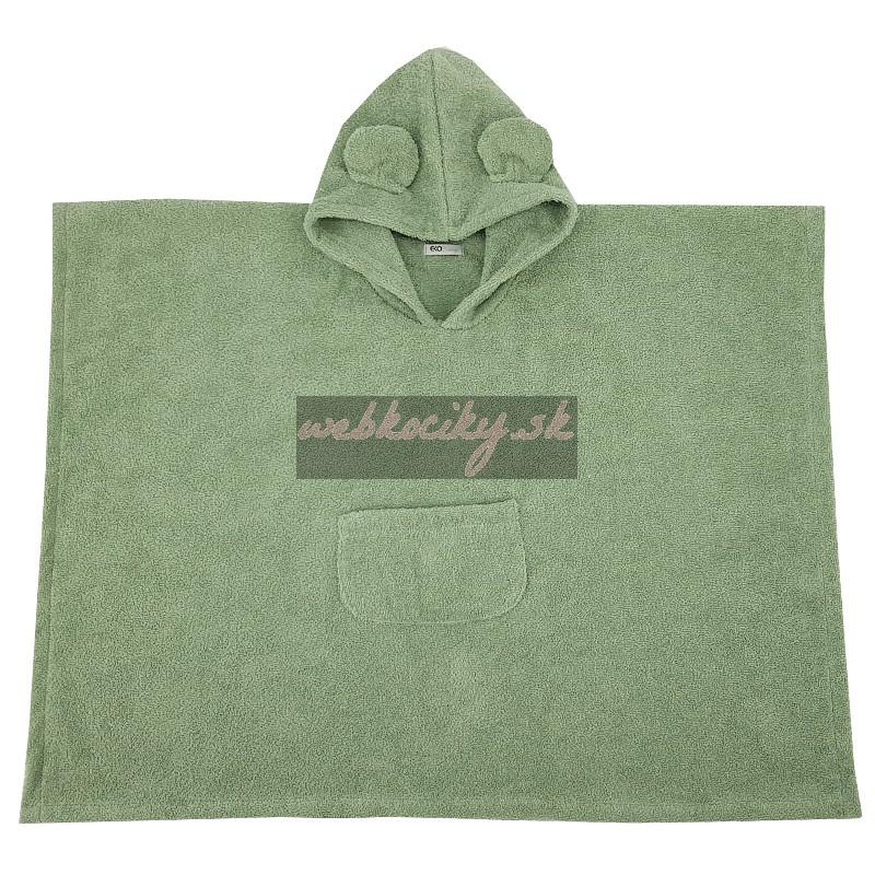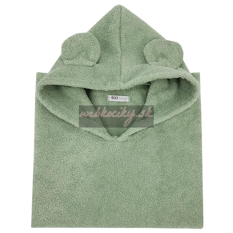 EKO Pončo bavlnené s kapucňou a uškami Olive green 75x120 cm