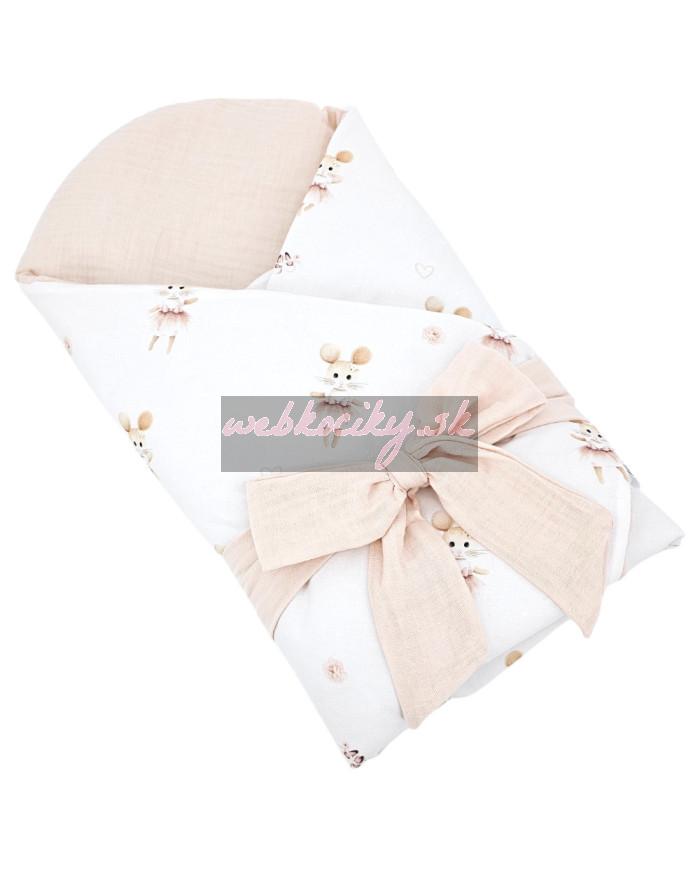 EKO Zavinovačka mušelínová s kokosovou vyberateľnou vložkou a mašľou Ballerina Mouse 75x75cm