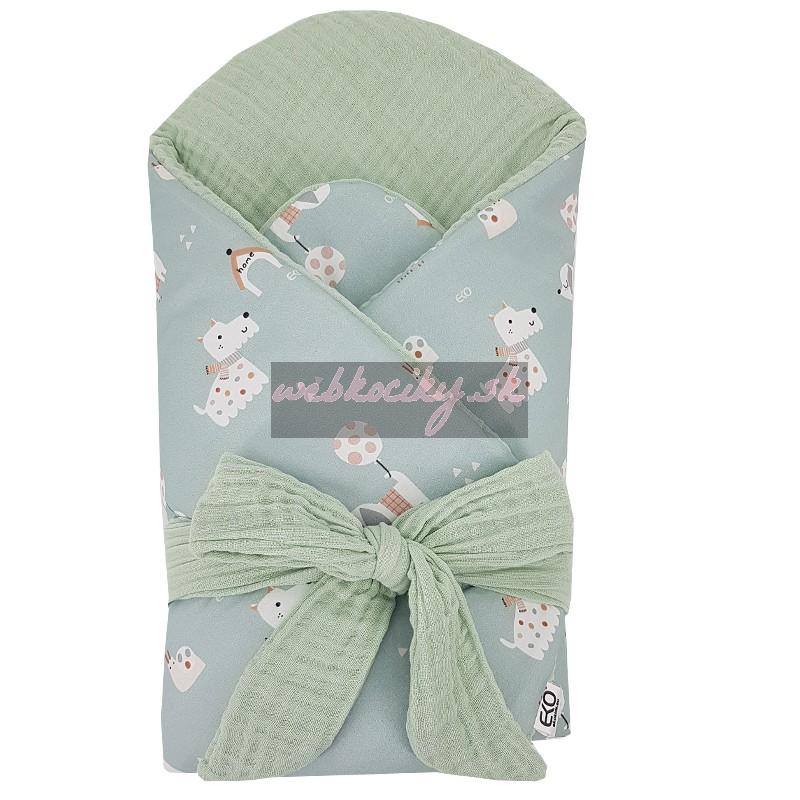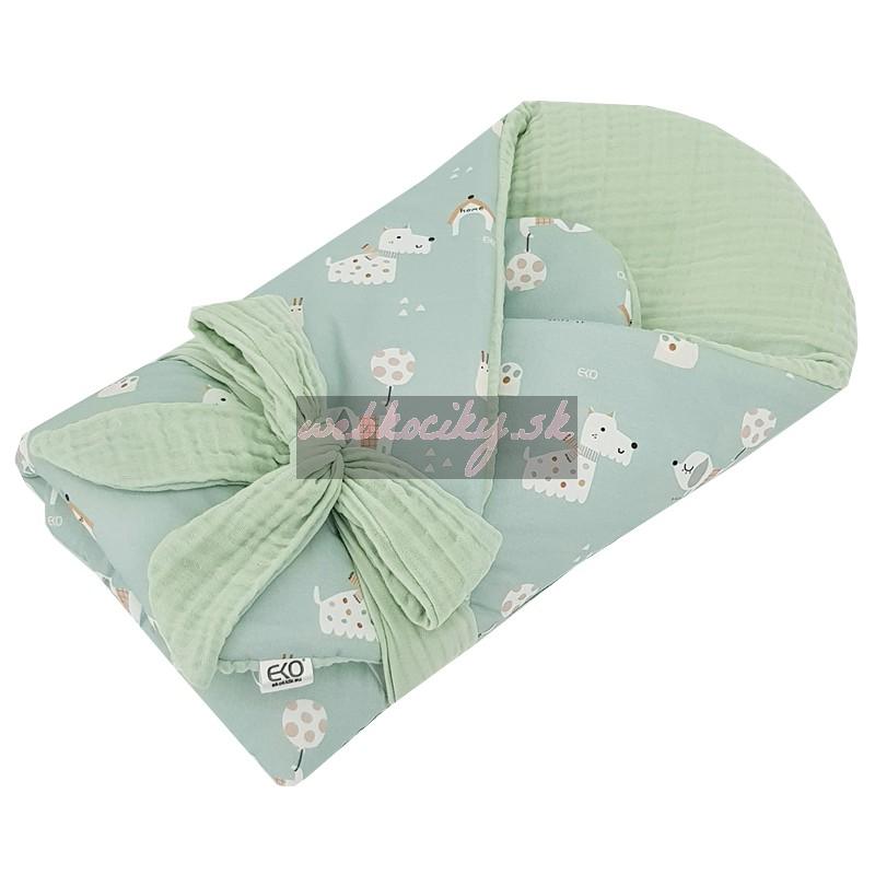 EKO Zavinovačka mušelínová s kokosovou vyberateľnou vložkou Dogs Muselin Mint 75x75 cm