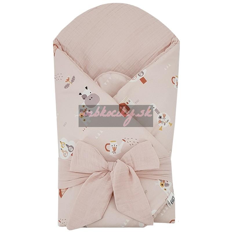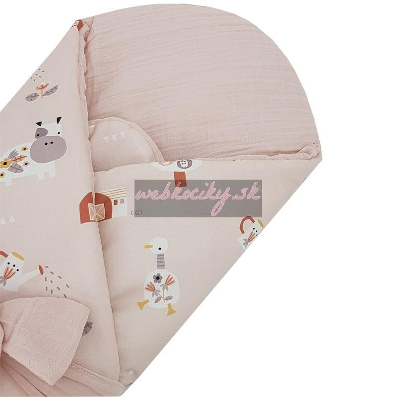 EKO Zavinovačka mušelínová s kokosovou vyberateľnou vložkou My farm Muselin Powder pink 75x75 cm