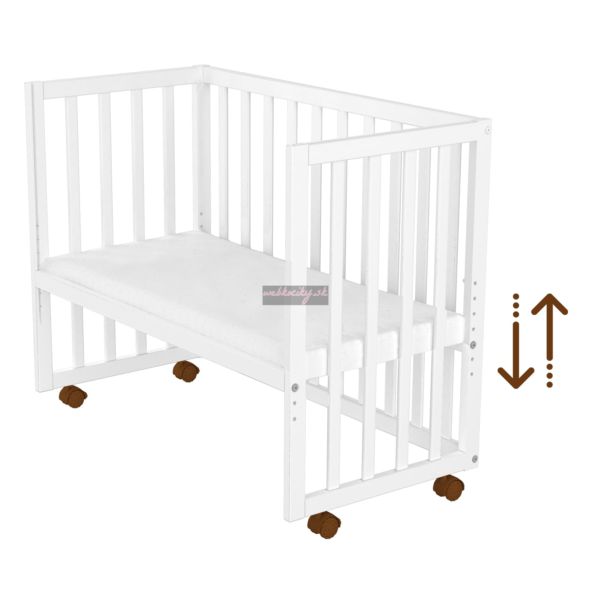 - Má sťahovacie bočnici a dá sa priraziť k rodičovskej posteli.