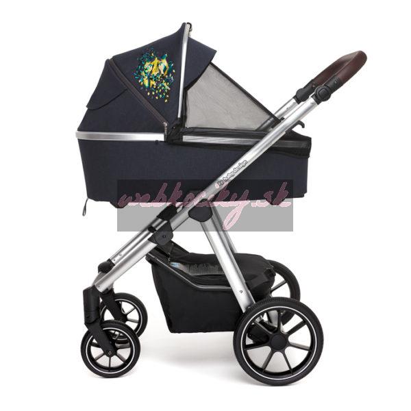 Vzory na kočíku sú vyšívané a nite výšivky sú vyrobené zo 100% drevnej celulózy – prírodného materiálu.