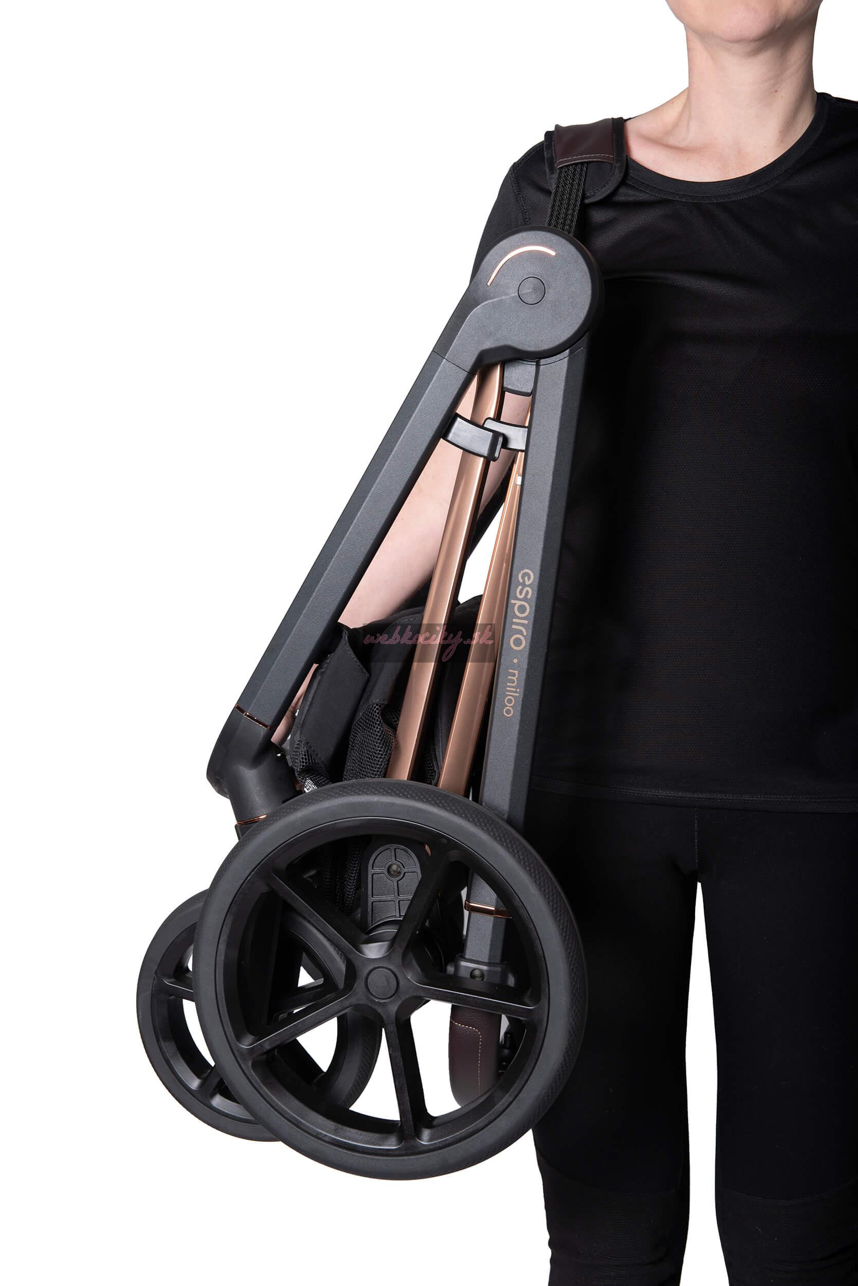 -Jednoduché skladanie jednou rukou ocenia množstvo užívateľov tohto kočíka. Kočík je možné prenášať pomocou popruhu na konštrukciu.