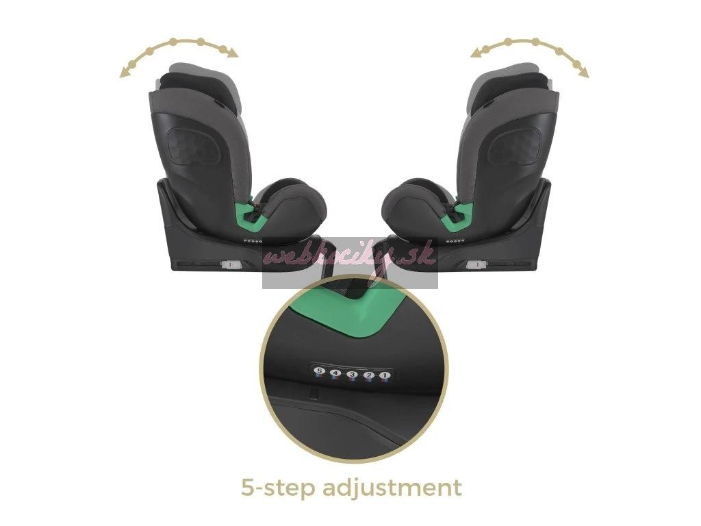 Model Espiro Tau je tiež vybavený funkciou nastavenia uhla sklonu sedadla, ktorá umožňuje dokonalé prispôsobenie polohy dieťaťa a zabezpečuje mu pohodlie a komfort ako počas krátkych, tak aj dlhých ciest. Sedačka ponúka až 5 polôh nastavenia sedadla, dostupných v oboch smeroch jazdy. Nastavenie uhla sedadla a smeru umiestnenia sa dá upravit jediným tlačítkom. Napriek tomu, že model Espiro Tau obsahuje mnoho funkcií, je veľmi jednoduchý a intuitívny na používanie.