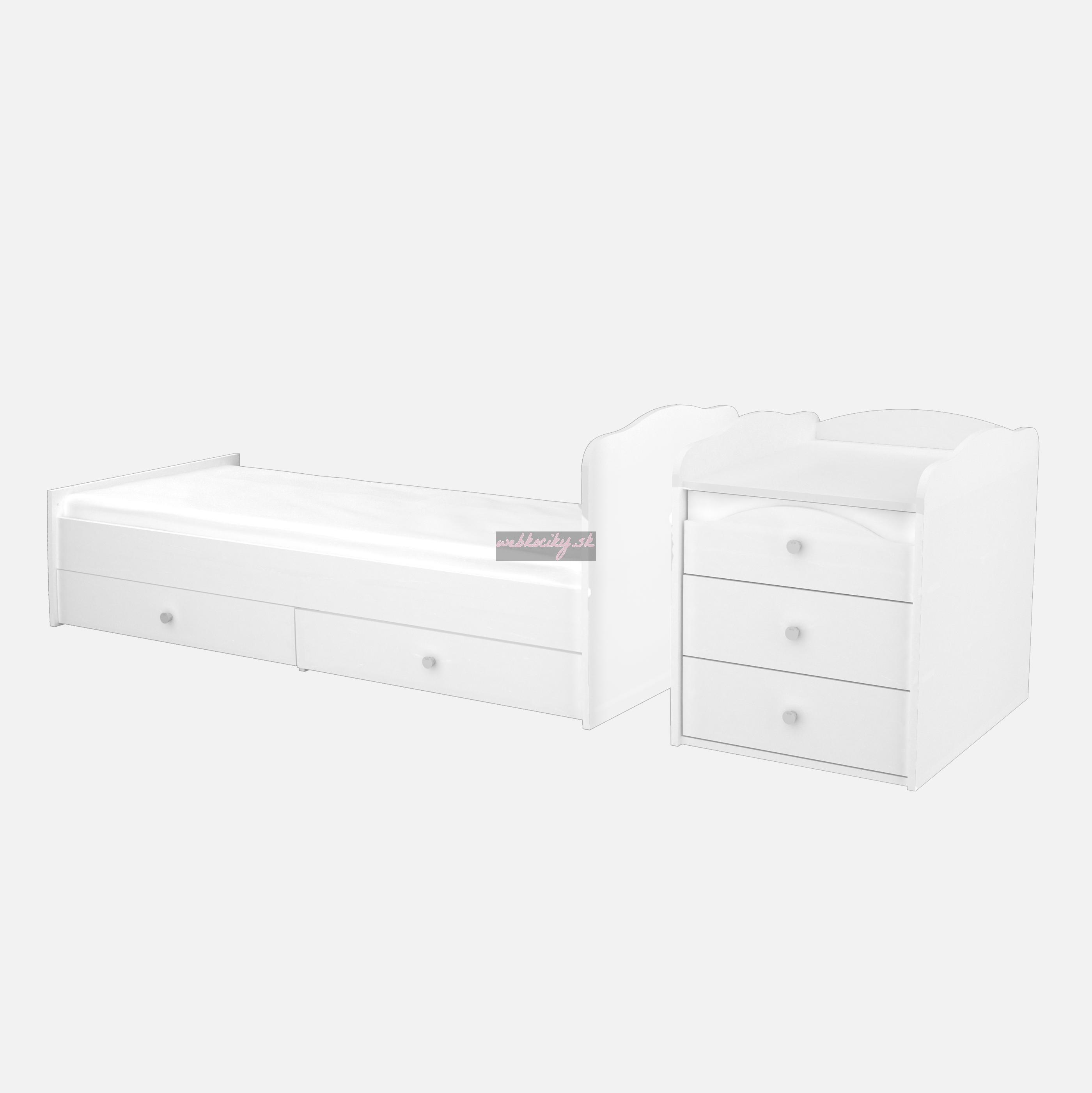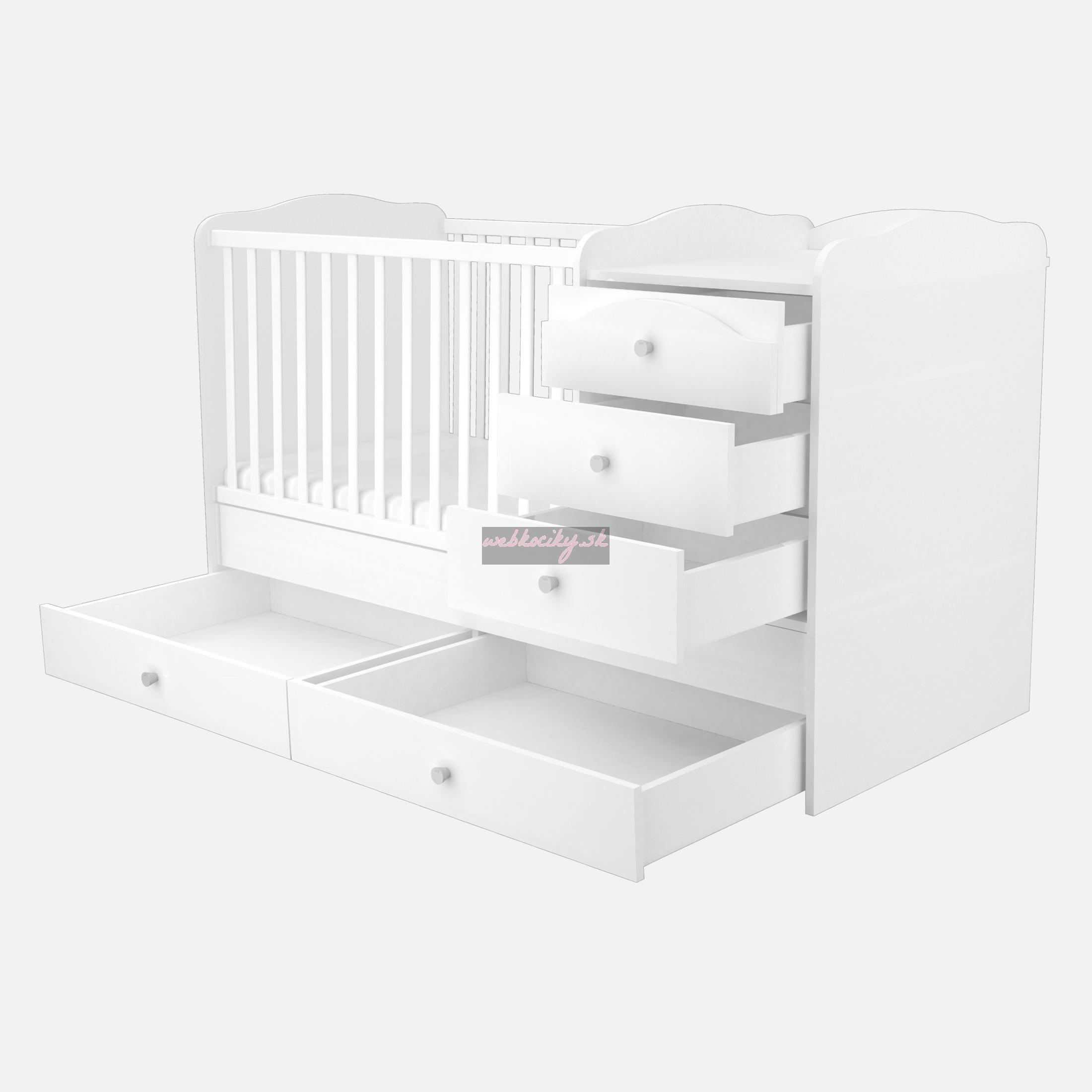 Félix MAXI 5-zásuvková kombi postieľka s prebaľovacím pultom biela