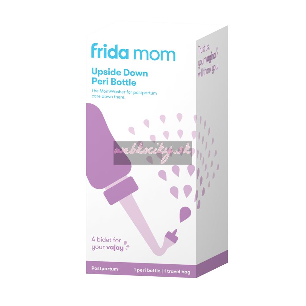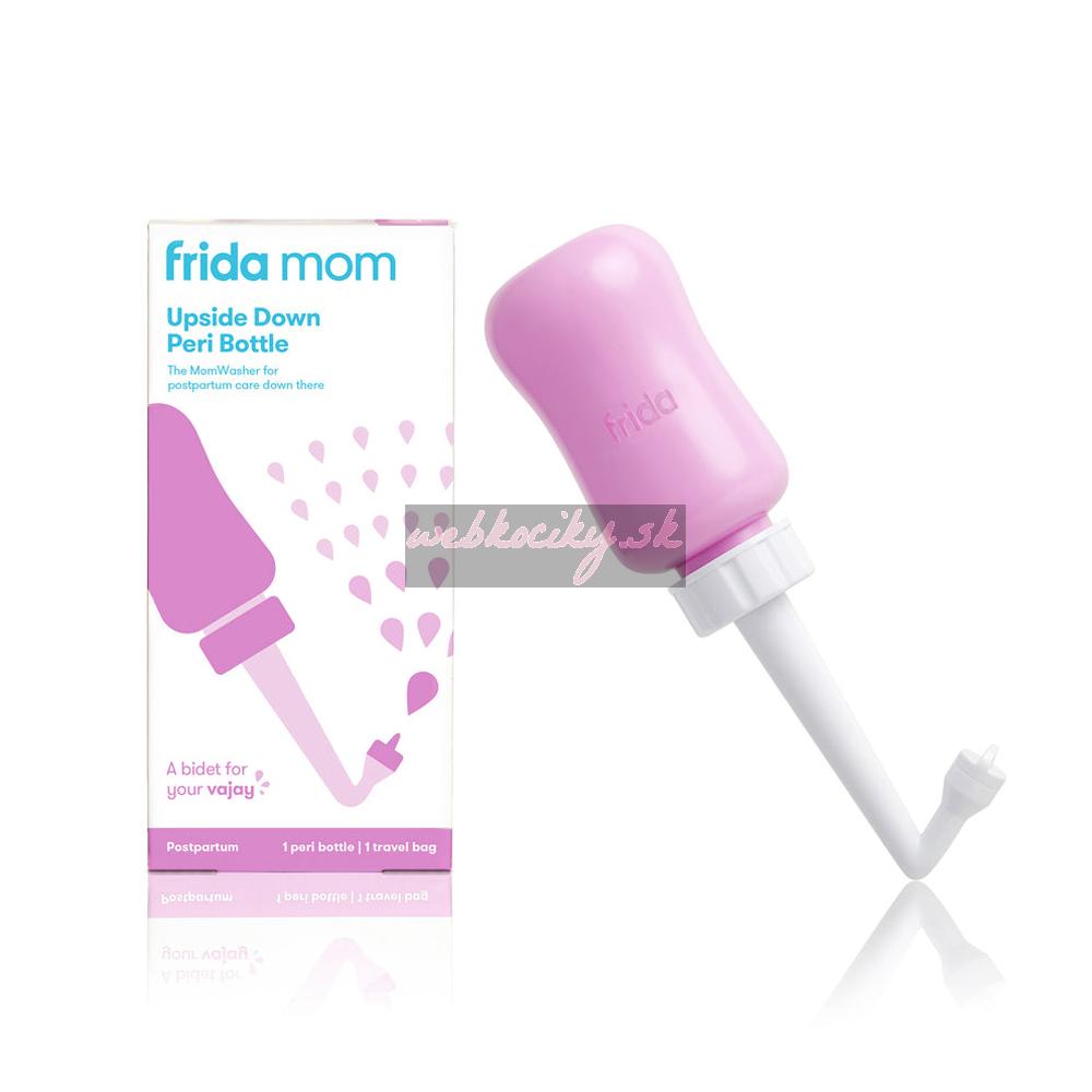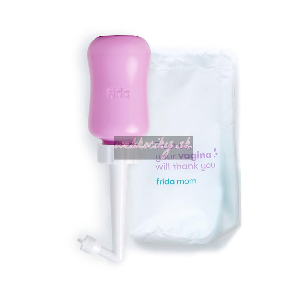- Do Frida Mom Intímnej spršky sa zmestí necelých 300 ml, nie je teda príliš veľká a ľahko ju schováte do kabelky alebo dojčiacej tašky. Jej súčasťou je tiež nepriepustné a nepriehľadné vrecko, ktoré fľašu ochráni pred nečistotami a vašu kabelku pred vodou. Nikto nespozná, čo je vo vnútri, a to môže rozhodne prísť vhod, keď prvýkrát vyrazíte s bábätkom medzi ľudí a budete sa potrebovať opláchnuť na toalete mimo domova.