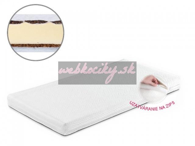 Špeciálny matrac vyrobený z 3 vrstiev: špeciálne upravené plody pohánky jedlej, kokosová vložka a molitánové jadro. Vrchná vrstva matraca je vyrobená z plodov pohánky jedlej, ktoré sú všité do špeciálnych otvorov, správne priliehajúcich k telu dieťatka. Pohánka je známa pre svoje antistresové vlastnosti, neutralizujúce škodlivé elektromagnetické žiarenia. Má vynikajúce termické vlastnosti, nenahrieva sa od prirodzeného tepla, vytváraného ľudským telom, minimalizuje potenie, chráni pred kožnými chorobami a preležaninami. Pôsobí antibakteriálne a bráni množeniu roztočov. Strednú vrstvu tvorí vysokokvalitná molitánová MOLITÁN, ktorá vďaka špeciálnym kanálikom umožňuje dobrý priechod vzduchu. Spodnú vrstvu tvorí kokosová vložka z prírodného kokosového vlákna, ktorá – podobne ako plody pohánky – pôsobí antibakteriálne, bráni množeniu roztočov a eliminuje potenie. Veľkosť matraca: 120x60 cm. Hrúbka: približne 8 cm. Odnímateľný poťah, biela farba poťahu. Možnosť prania poťahu v práčke. Materiálové zloženie: Poťah: 70% polyester, 30% bavlna Molitanová časť: bezfreónový polyuretánový molitan Kokosová vložka: vyrobená v súlade s certifikátom Oko-Tex Standard 100