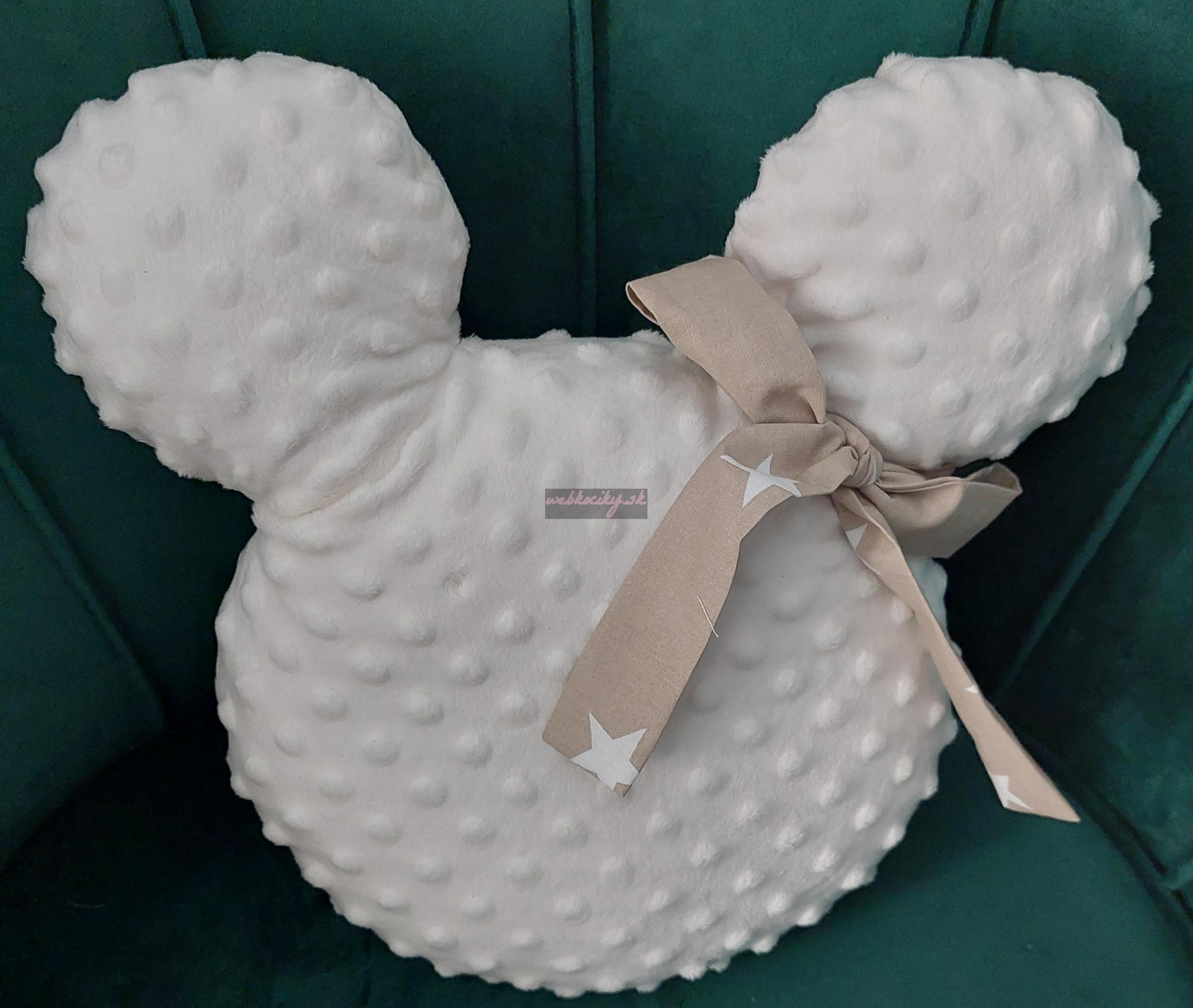 Handmade Mickey vankúšik minky maslový s béžovou mašľou