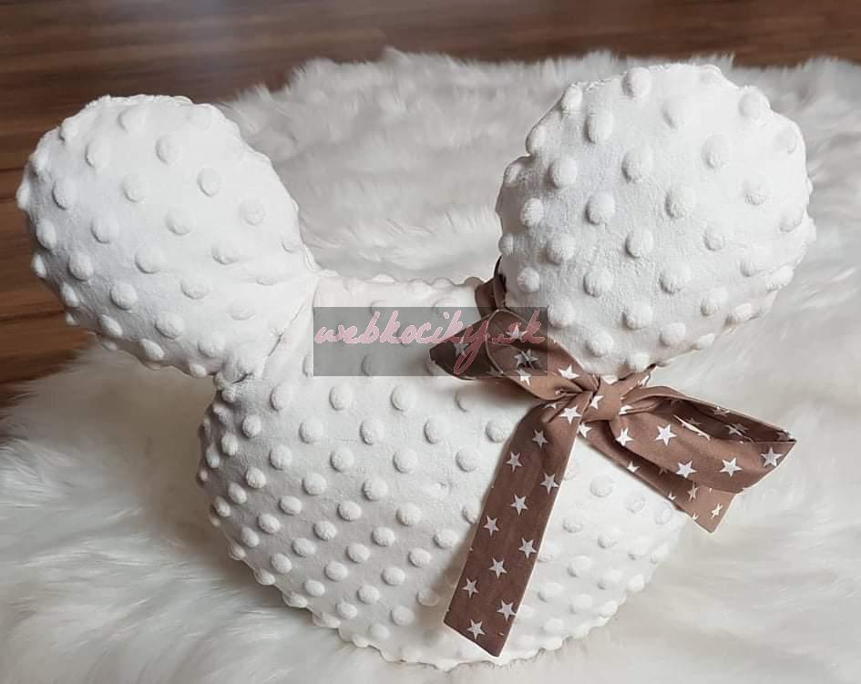 Handmade Mickey vankúšik minky maslový s hnedou mašľou