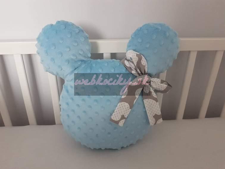 Handmade Mickey vankúšik minky modrý so sivou mašľou