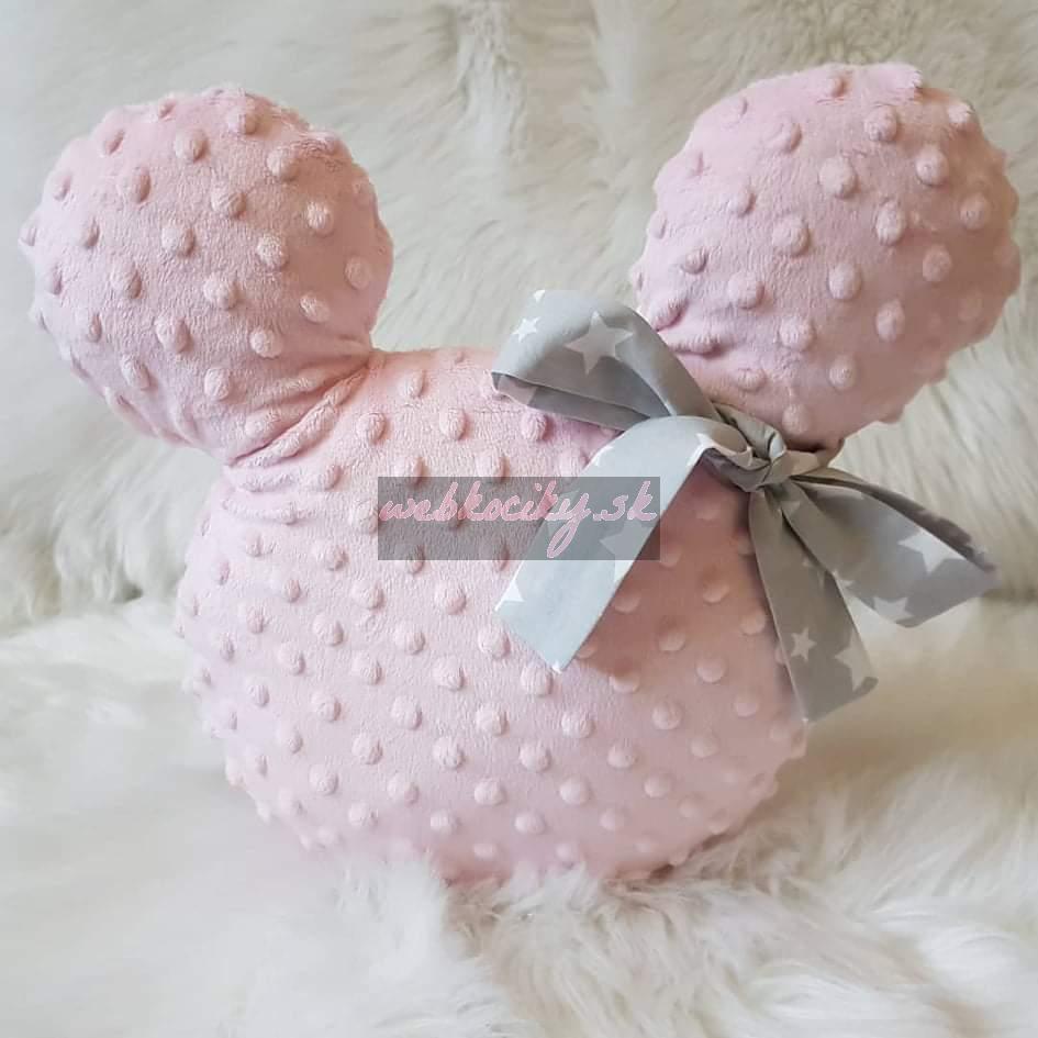Handmade Mickey vankúšik minky ružový so sivou mašľou
