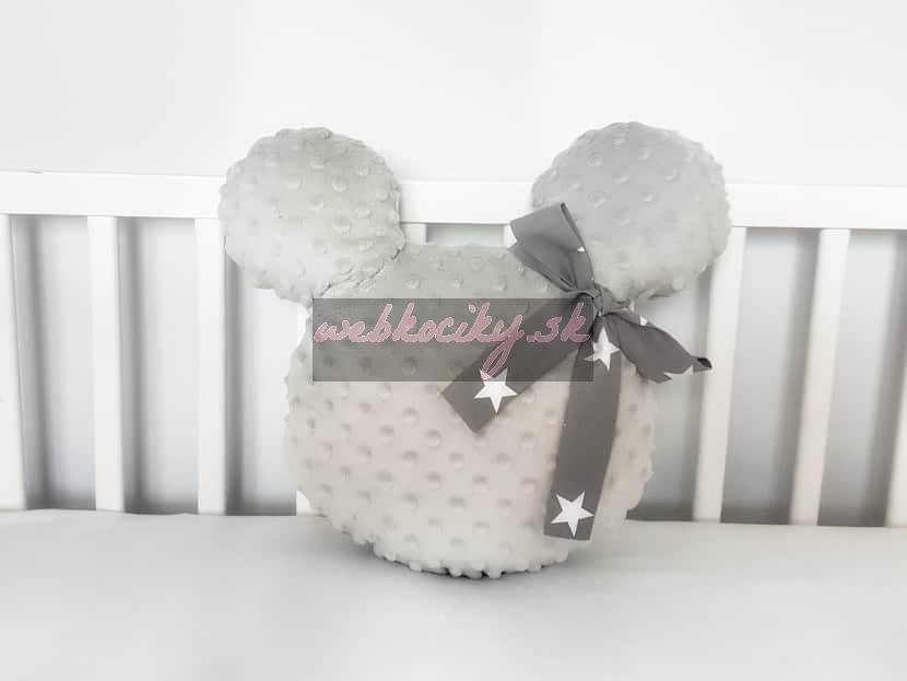 Handmade Mickey vankúšik minky sivý so sivou mašľou