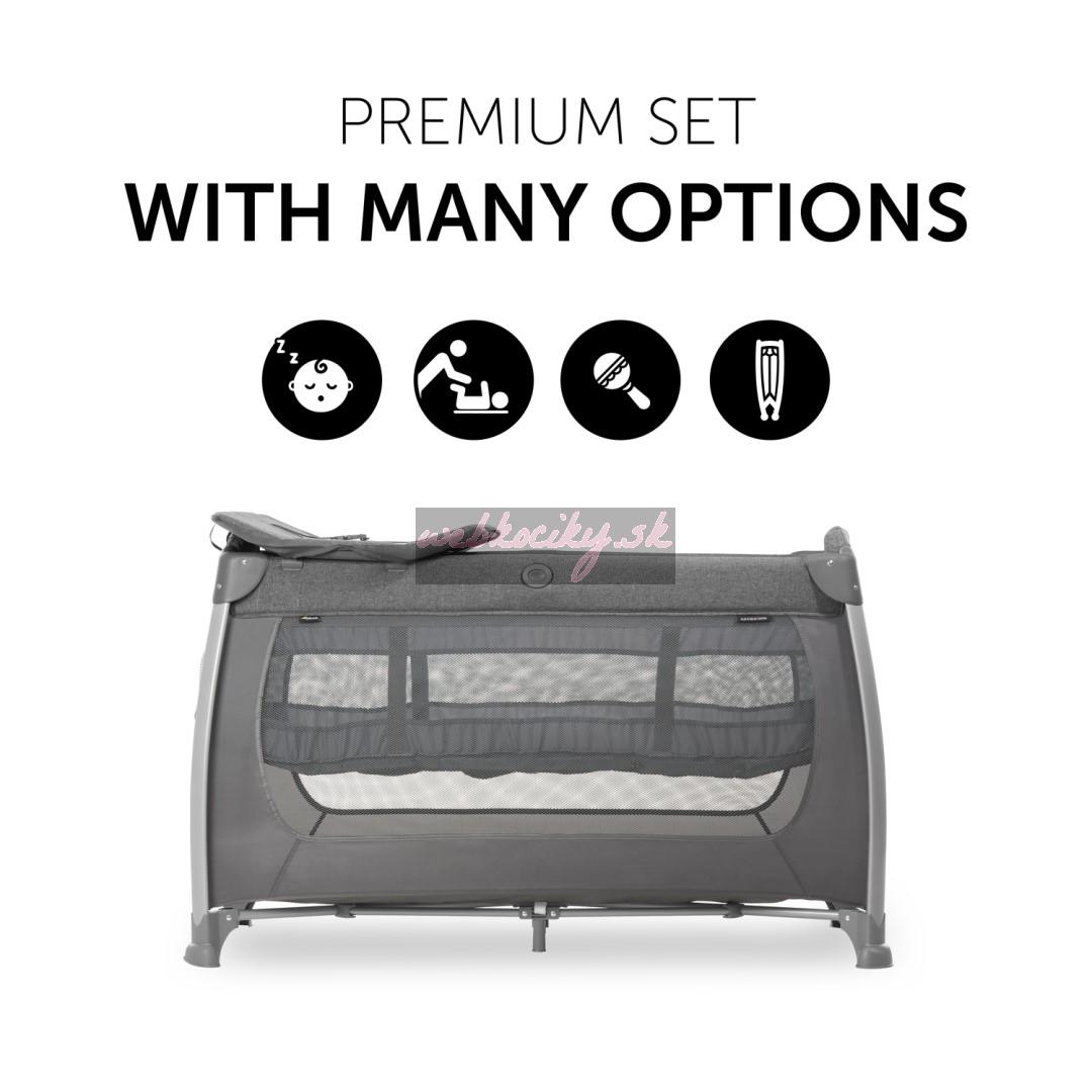 FLEXIBILITA VŠADE S INTEGROVANÝM PRÍSLUŠENSTVOM // Stačí jeden pohyb rúk a ste pripravení vyraziť, pretože prémiová cestovná postieľka má premyslené príslušenstvo plne integrované: praktickú prebaľovaciu podložku a tašku na doplnky, výškovo nastaviteľné druhé dno pre novorodenca, prielez pre väčšie deti a integrovaná zmeny miesta.