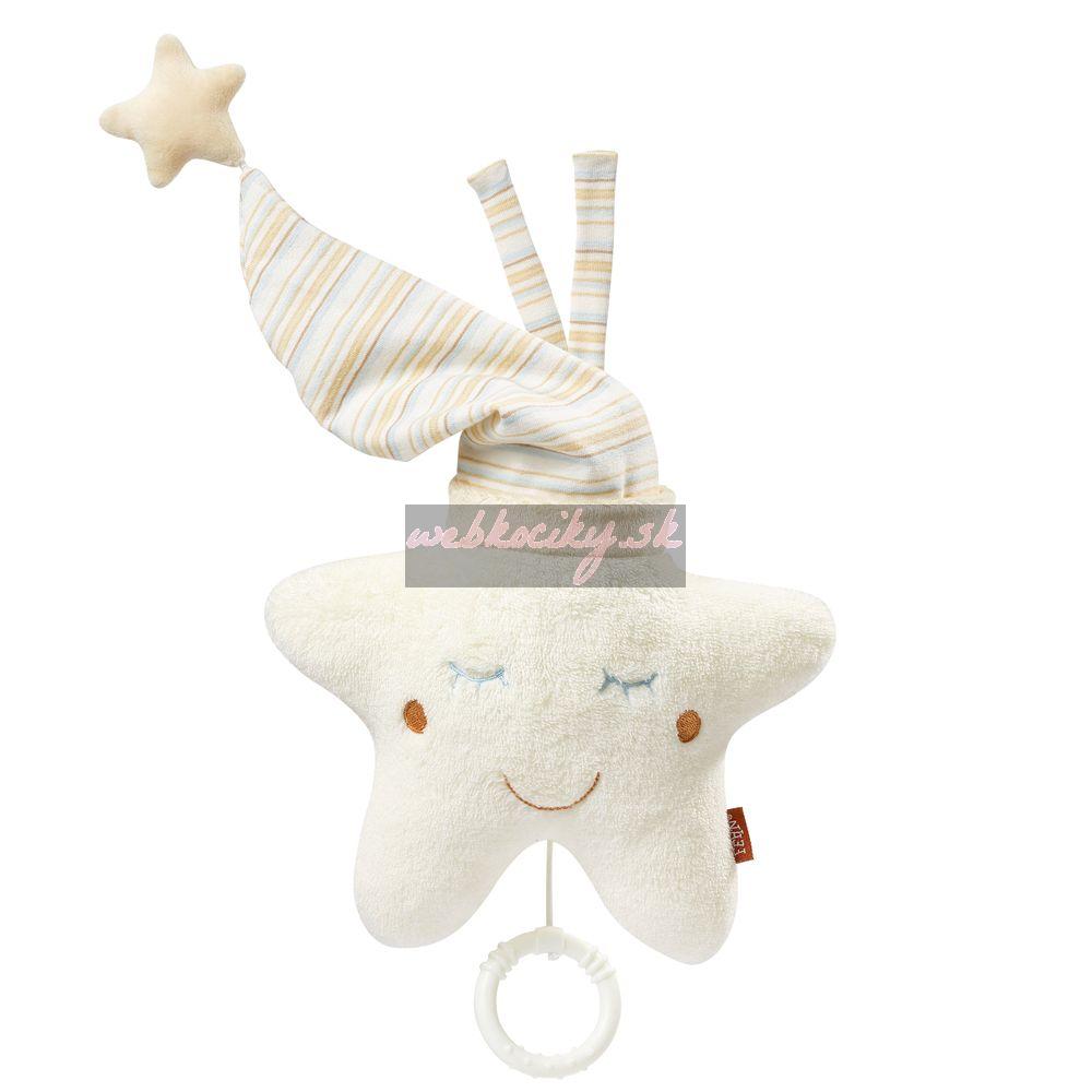 Roztomilá hracia hviezdička svojím prevedením nenechá žiadna detská očká bez povšimnutia. Zatvorené očká motivujú dieťatko na uloženie sa na spánok. Hrací strojček je vyberateľný, na zips. Príjemná melódia sa bude šíriť jemne detskú izbičkou a detičkám prinesie sladké sny.