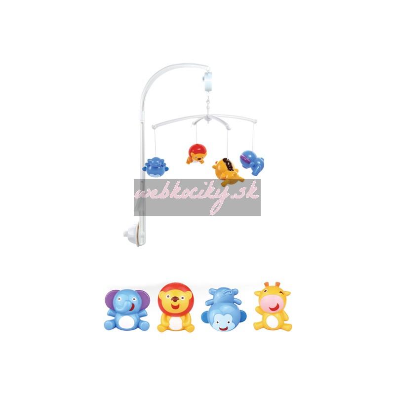 Kolotoč nad postieľku pre ľahké zaspávanie a zabavenie Vášho bábätka. Súčasťou sú 4 závesné hračky, ktoré možno odňať a použiť samostatne. Umožňuje zapínanie/vypínanie melódie či otáčania kolotoča. Vhodné pre deti od narodenia.