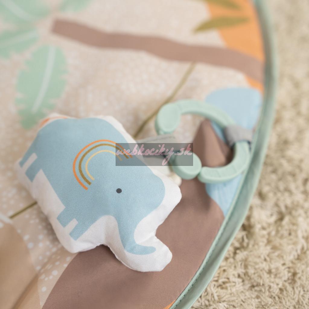 - Jednoduché čistenie: podložku možno utrieť, hračky sú látkové