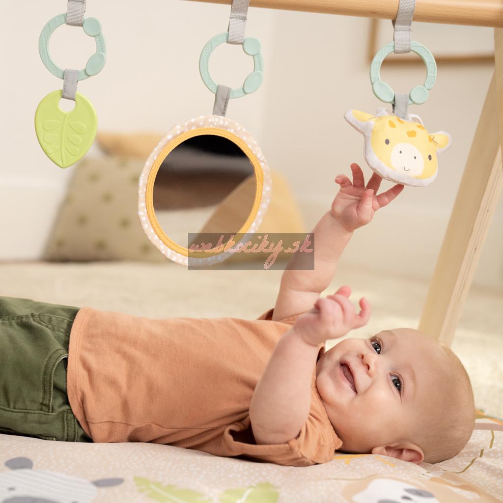 - Súčasťou balenia: plameniaková žirafa s praskaním, textúrovaný lístok, jemná zebra, sloník s praskaním, látkové zrkadielko