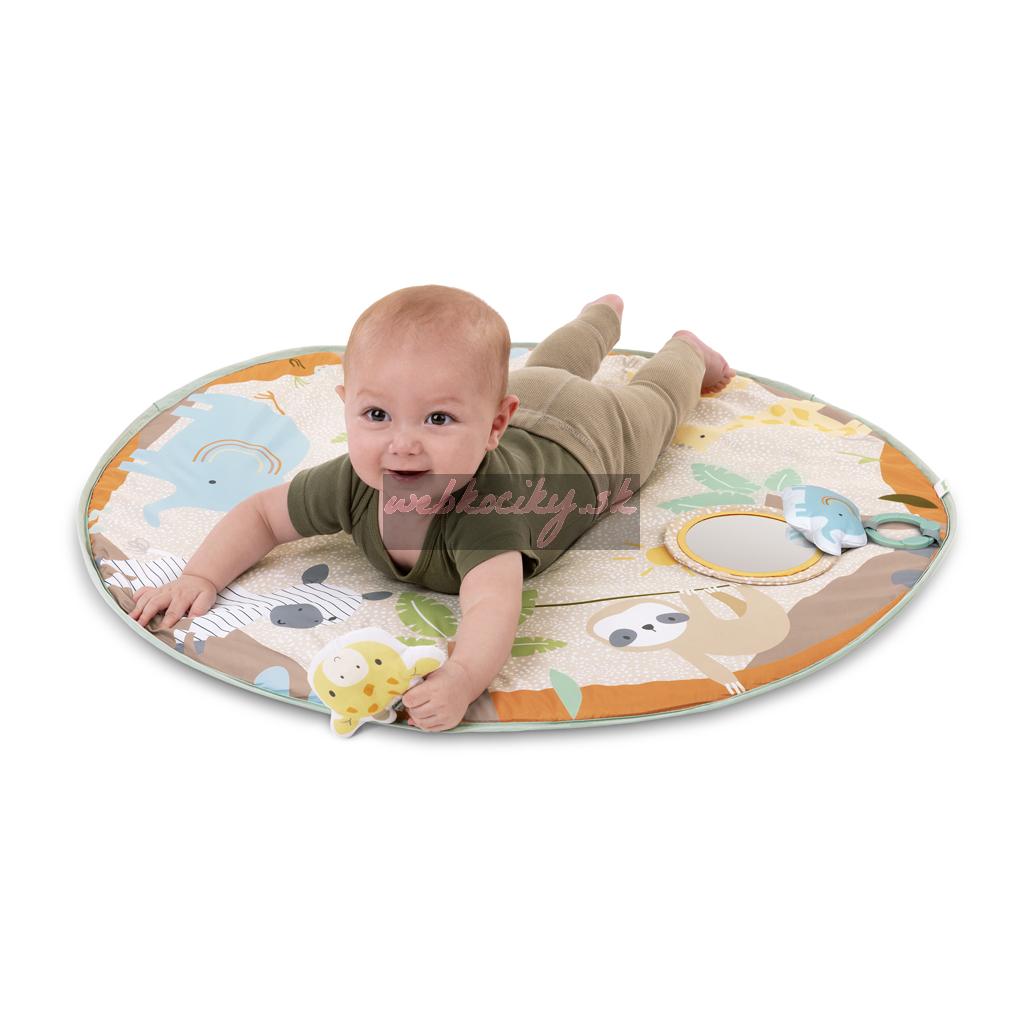 Vytvorte vášmu bábätku bezpečné a hravé prostredie na podložke, ktorá rastie spolu s ním! Táto deka na hranie Wonder & Wood™ ponúka tri fázy hry: ležanie, čas na brušku a v sede. Navyše moderný drevený dizajn s A – rámom sa hodí do každého interiéru a zložíte ho bez náradia – ideálny na doma aj na cesty. Všetky hračky sú navrhnuté pre rozvoj zmyslov, poznávanie tvarov, textúr a zvukov. Vďaka C-krúžkom ich ľahko odpojíte a pripevníte na kočík, autosedačku alebo stoličku. Ideálna ako darček na baby shower, narodeniny či len tak pre každodenné pohodlie.
