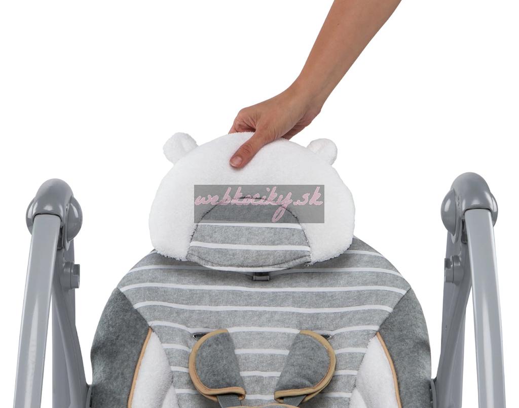 Vďaka technológii snímania hmotnosti sa rýchlosť hojdania automaticky prispôsobuje rastúcej hmotnosti dieťatka. Neutrálny dizajn je vhodný pre dievčatá aj chlapcov a hojdačka je skvelým tipom na darček k narodeniu bábätka.