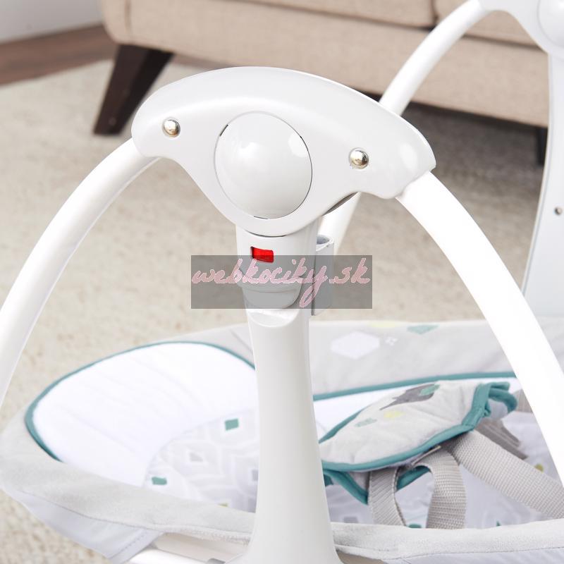 Hojdačka je vybavená 5- bodovým pásom a protišmykovými nožičkami pre bezpečnosť a ľahko sa udržuje v čistote. Neutrálny dizajn a luxusné funkcie uľahčia deň rodičom a doprajú odpočinok dieťatku.