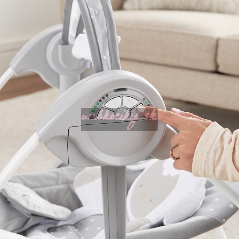 Super kompaktná hojdačka, ktorá v sebe zachováva všetky najdôležitejšie funkcie veľkej hojdačky. Táto ľahká hojdačka je vybavená množstvom funkcií vrátane polohovania sedacej časti do 2 polôh, hrazdičkou s 2 plyšovými hračkami, ktorá sa dá jednoducho odstrániť pre ľahký prístup k dieťatku a technológiou, ktorá umocňuje upokojujúci zážitok dieťatka.