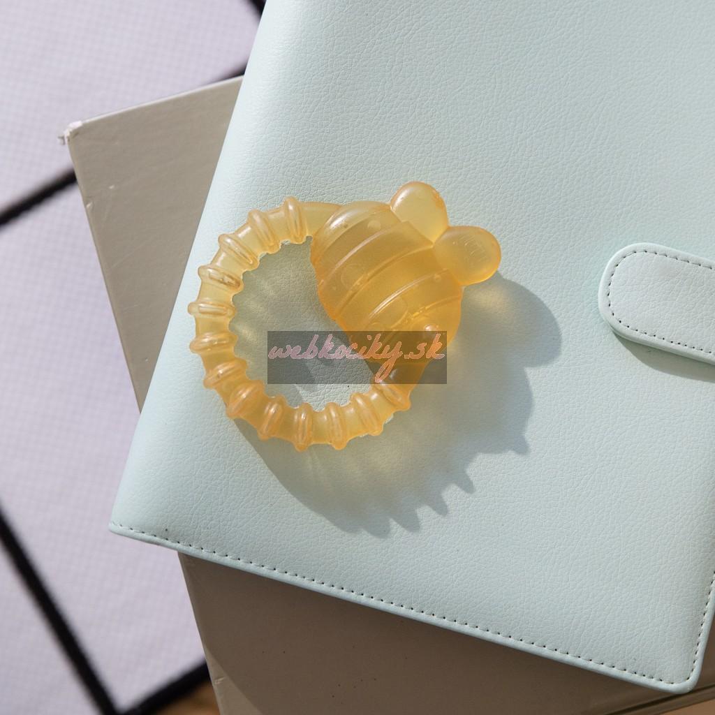 - Bábätko si zamiluje jemnú zlatú farbu hryzačky a roztomilú postavičku čmeliaka Bombyho. Pre väčšiu úľavu možno toto vodou naplnené hryzátko umiestniť do chladničky, kým nevychladne, takže dieťa má niečo studené a upokojujúce na papanie pre pohodlie.