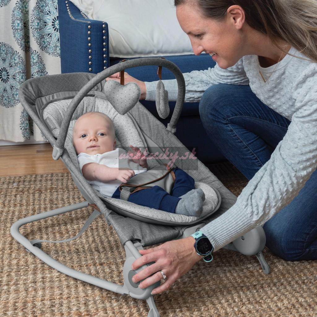 Summer™ 2v1 Bouncer & Rocker Duo rieši vašu potrebu vybrať si medzi húpatkom alebo lehátkom. Dizajn 2 v 1 umožňuje rodičom jednoducho prepínať medzi režimom pohupovania a hojdania v závislosti od toho, aký štýl preferuje vaše dieťatko. Ak má vaše dieťatko rado plynulý pohyb dopredu a dozadu, režim kolísania ho určite upokojí. Ak sa radšej odrážajú, stačí vyklopiť stabilizačné nožičky. Odnímateľná hrazdička obsahuje dve plyšové hračky, na ktoré môže dieťatko siahnuť. Jedna C batéria napája funkciu upokojujúcich vibrácií v tomto prenosnom lehátku, ktoré sa automaticky vypne po 15 minútach. Bouncer-Rocker Duo sa dá zložiť úplne naplocho pre skladovanie a cestovanie, takže si ho môžete vziať so sebou, keď ho najviac potrebujete. Pre jednoduché čistenie je možné podložku sedadla vybrať a vyprať v práčke.