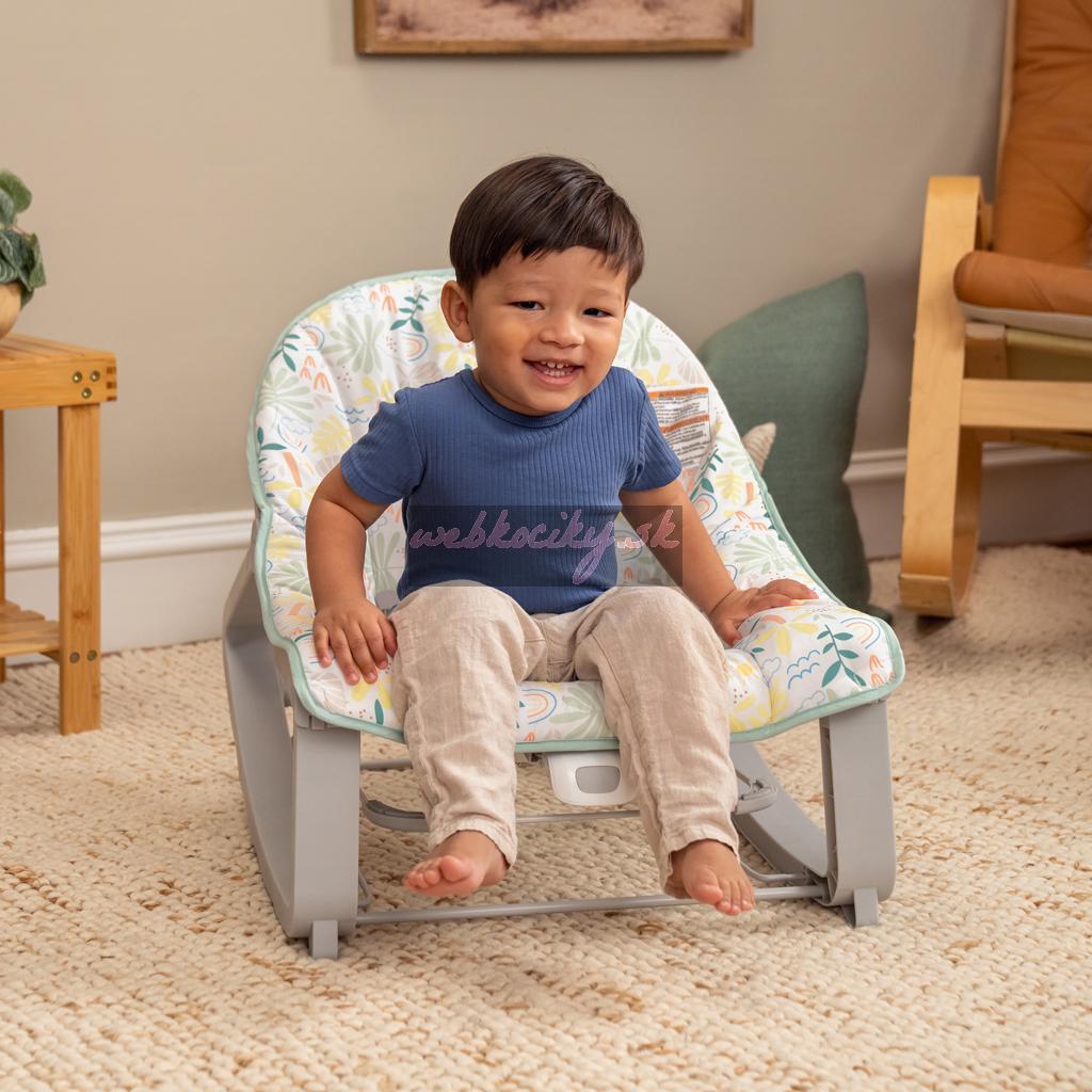 Obľúbená detská hojdačka a lehátko Ingenuity Keep Cozy patrí medzi najpredávanejšie produkty vo svojej kategórii! Vďaka 3 režimom používania porastie spolu s vaším dieťatkom od narodenia až do 30 mesiacov (do 18 kg). Táto multifunkčná hojdačka ponúka jemné vibrovanie pre upokojenie bábätka, možnosť hojdania alebo premeny na stabilné sedadlo pomocou výklopnej opierky. Prídavná výstuž pre novorodencov zaistí pohodlie a bezpečie v prvých mesiacoch života a neskôr sa dá jednoducho odstrániť. Ideálny darček pre novopečených rodičov a skvelý doplnok do každej detskej výbavy. Hojdačka Keep Cozy je bezpečné, pohodlné a praktické riešenie na každý deň.