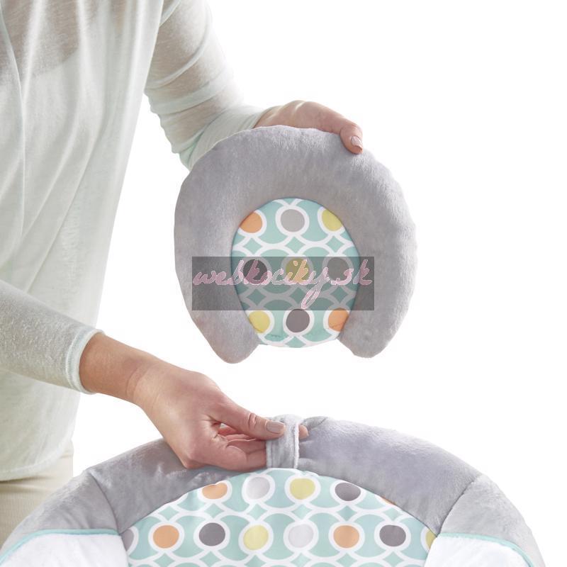 Lehátko obsahuje polstrovaný vankúšik, bočné opierky a opierku pod hlavu, ktoré jednoducho odstránite, keď dieťatko vyrastie.