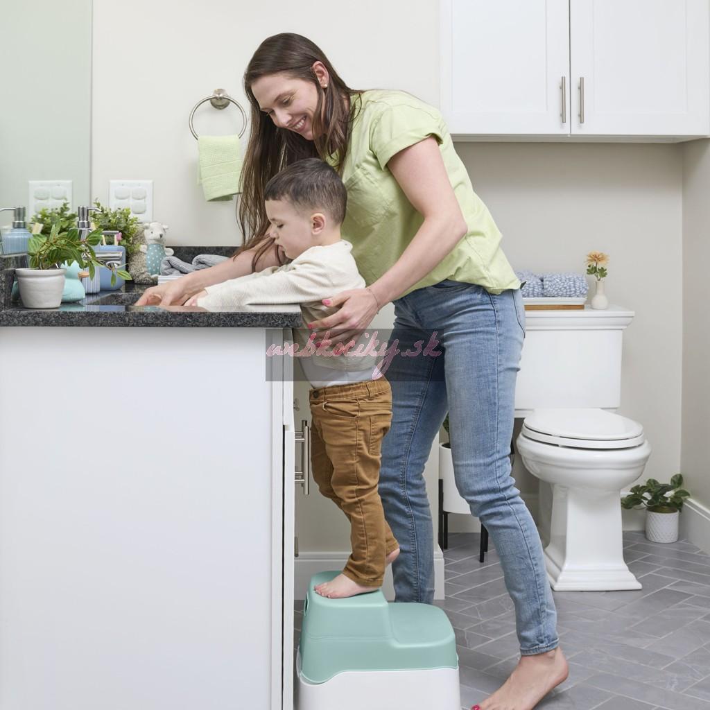 - Dvojstupňová stolička pomáha dieťaťu dosiahnuť na toaletu aj umývadlo