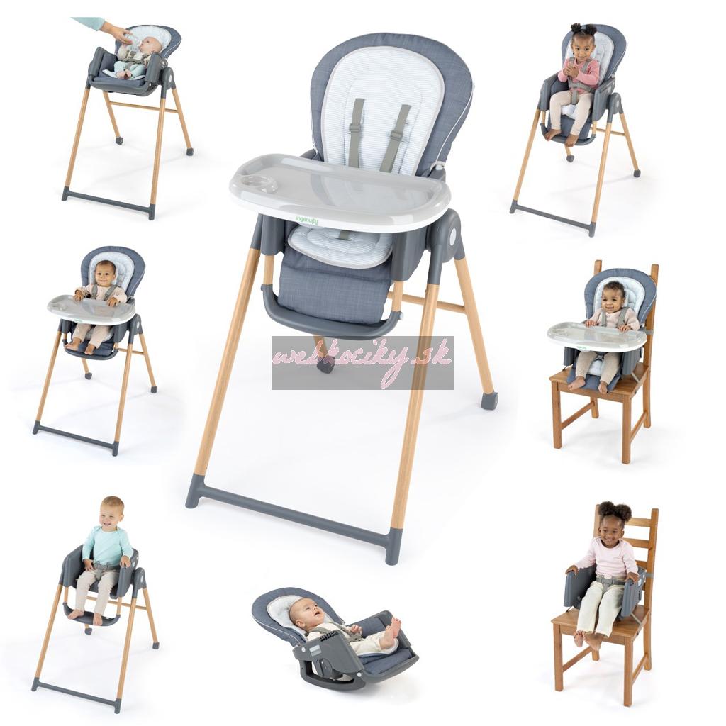 Univerzálna konvertibilná vysoká detská stolička 7v1 od Ingenuity Vám dopraje možnosť, aby Vaše dieťatko bolo pri Vás od jeho prvého dňa. Jedálenská stolička Ingenuity Proper Positioner 7v1 ponúka 7 režimov, v ktorých rastie s dieťaťom od narodenia až do 5 rokov. Podporuje správne držanie tela, čím podporuje lepšie trávenie od novorodenca až po batoľa.