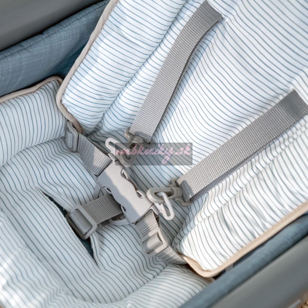 - Nastaviteľný 5-bodový alebo 3-bodový bezpečnostný pás udržuje dieťa v bezpečí.