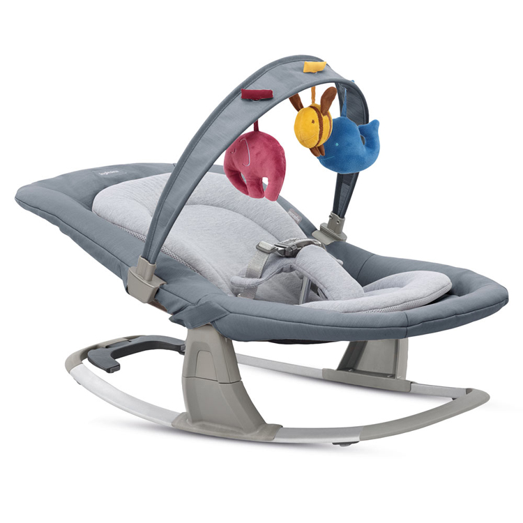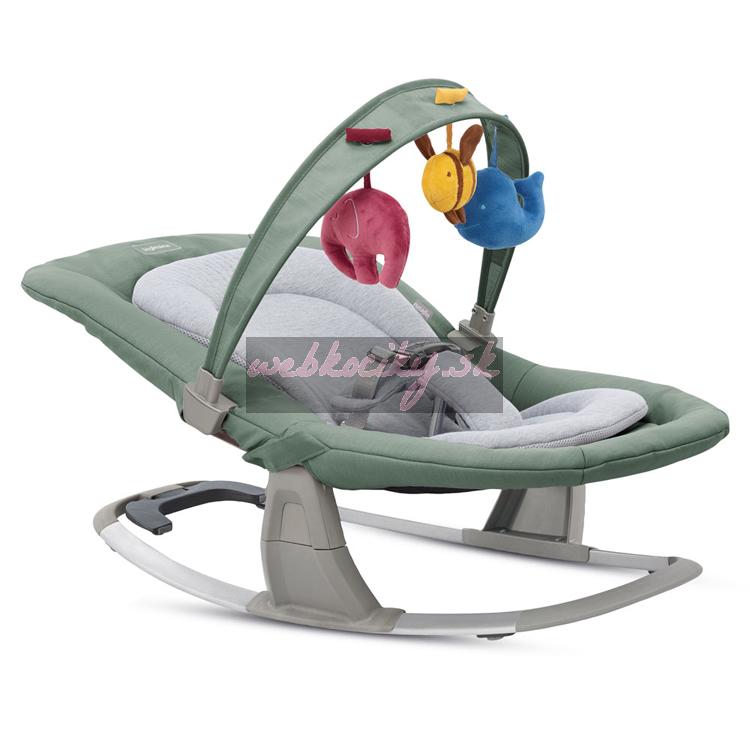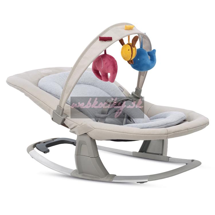 Zakrivený tvar rámu je navrhnutý tak, aby zaručoval jemný, plynulý pohyb. Hrazda s 3 hračkami môže byť pripevnená v rôznych polohách tak, aby to najlepšie vyhovovalo dieťatku. Hudobný box prehráva 3 klasické melódie s možnosťou nastavenia hlasitosti. Silné a pohodlné polstrovanie s novorodeneckou vložkou z priedušného materiálu, pre lepšiu cirkuláciu vzduchu.