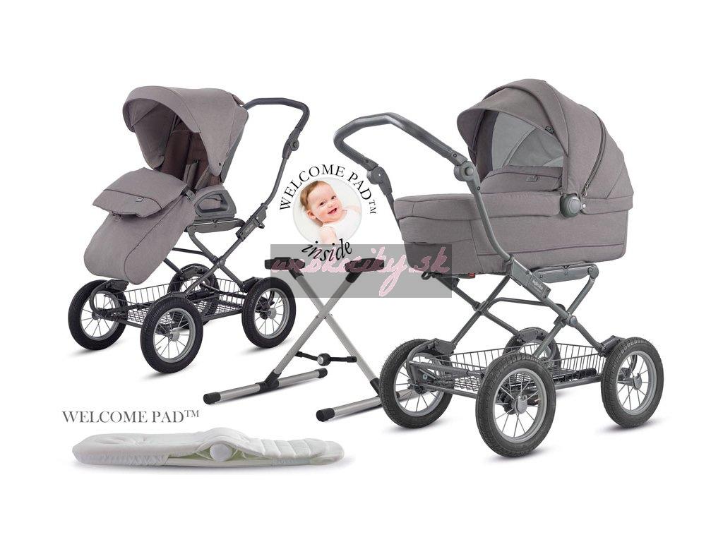 Sofia Duo 2v1 obsahuje priestrannú hlbokú vaničku s inovatívnou podložkou Welcome PadTM, ktorá bola vyvinutá pre novorodencov v spolupráci s neonatológmi a zaisťuje optimálnu pozíciu hlavy i nožičiek dieťaťa. Druhou časťou systému je vylepšená športová sedačka, ktorá je nielen veľmi priestranná, ale aj schválená pre použitie až do 22 kg hmotnosti dieťaťa. Súčasťou je aj osvěčený, mnoho rokov dodávaný podvozok Comfort Bike s nafukovacími kolesami. Doma umiestnite vaničku na čistý podstavec Stand Up a dieťa môže spať ďalej.