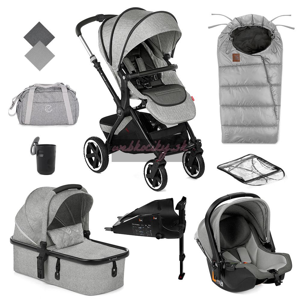 SET zahŕňa: kočík so športovou časťou + vanička Micro Pro + autovajíčko Koos iSize + isofixovú platformu na autosedačku + tašku na rúčku kočíka + igelitový kryt + fusak + držiak na fľašku na rúčku kočíka