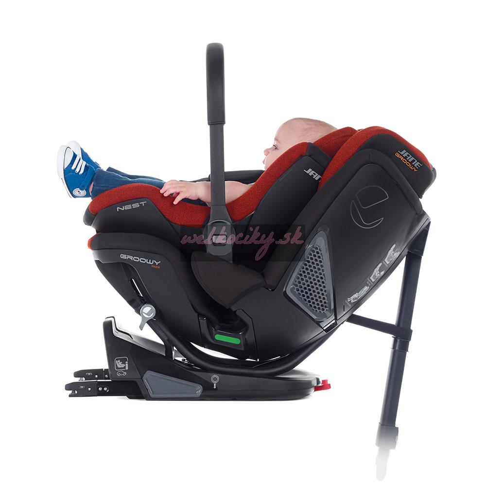 Ponúkame úplne originálne riešenie problému prenosu dieťaťa v autosedačke. Inštalácia v polohe otočenej dozadu až do výšky 105 cm s detským prenosným ležadlom Nest, vytvoreným pre novorodencov do 65 cm a kompatibilným s kočíkmi Jané. Vďaka práve odnímateľnému mäkkému nosiču Nest vážiacemu iba 2 kg sa prenos dieťaťa v autosedačke pre vás stane zásadným spôsobom jednoduchší a pohodlnejší. Inovatívny dizajn detského prenosného ležadla Nest poskytuje dieťaťu ideálnu, zdravú a bezpečnú polohu pre cestovanie v kočíku aj v aute. Pohodlne polstrovaný nosič poskytuje rodičom niekoľko možností nosenia. Pre jazdu autom nosič jednoducho zakliknete do základne autosedačky, ktorá zostáva vo vozidle pripevnená systémom ISO-FIX. Manipulácia s prenosným ležadlom Nest je veľmi intuitívna pre rýchle a zároveň maximálne bezpečné použitie.