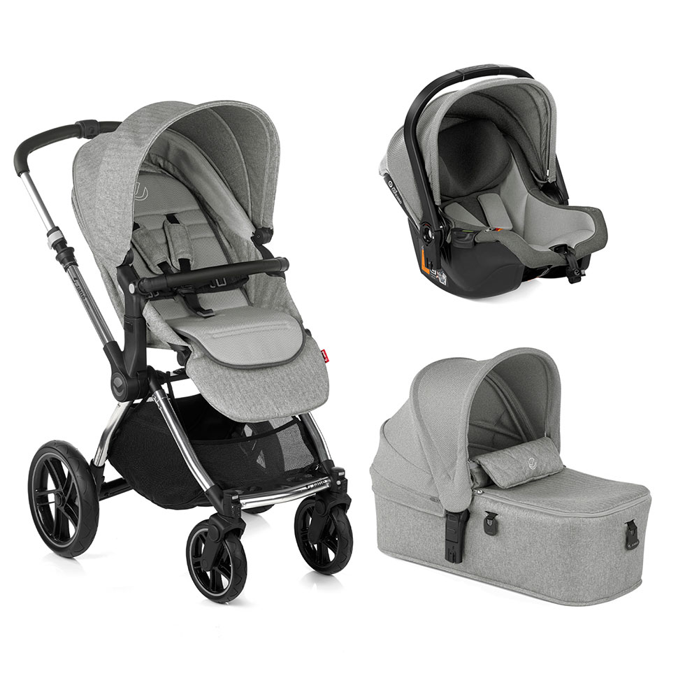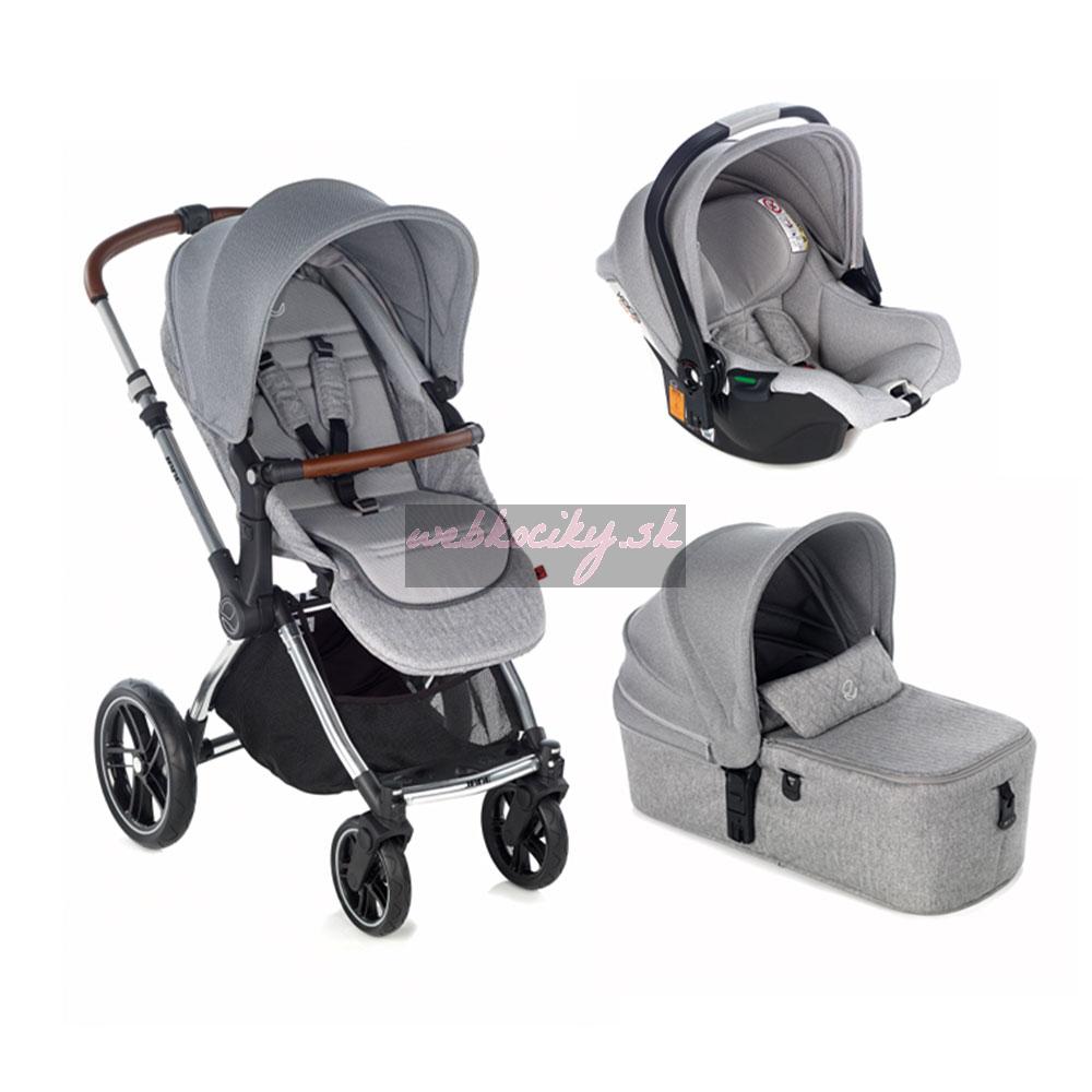 Trojkombinácia zahŕňa: kočík so športovou časťou + vanička Micro + autovajíčko Koos iSize