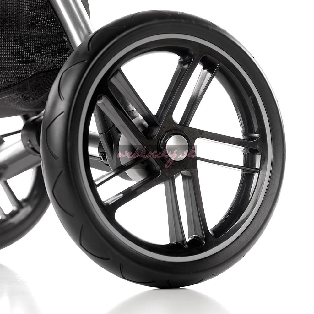 Veľké kolieska z hydrolytického PU. Predné aj zadné odpruženie.