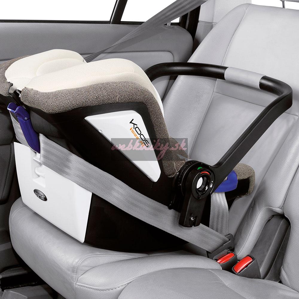 E Pri použití ISOFIX základne iKoos už nepoužíva bezpečnostné pásy ako upevňovací systém. V súlade s nariadením ECE R129 i-Size European safety standard, iKoos využíva platformu s ultra rýchlymi konektormi s Profix blokovaním od Jané. A s upevňovaním do auta pomocou Isofixu a frontálnou nohou, kvôli dosiahnutiu kompletnej bezpečnosti a spoľahlivosti.