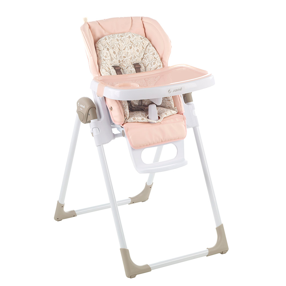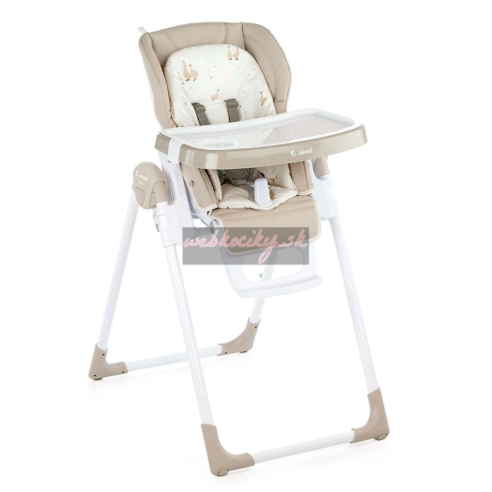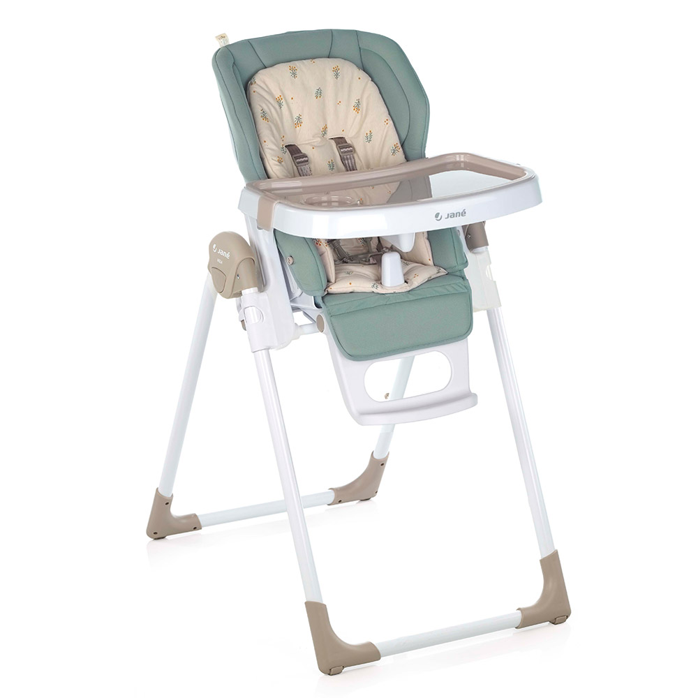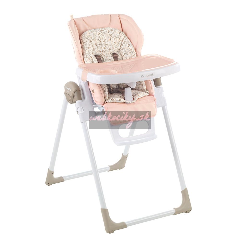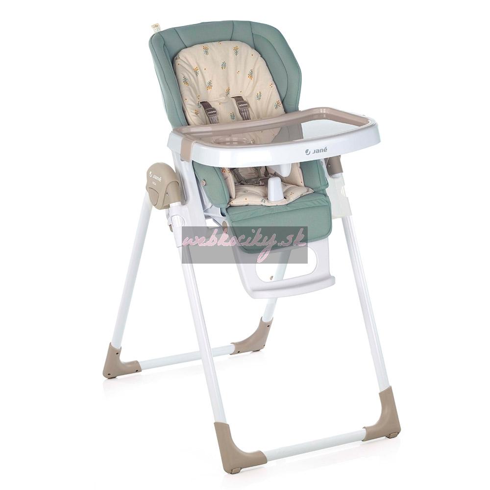 Nová skladacia jedálenská stolička, nastaviteľná do 6 polôh. Je určená pre deti od 0 mesiacov do 3 rokov. Chrbtová opierka nastaviteľná do 6 polôh, výška do 7 polôh a pultík do 2 polôh. Snímateľná mäkká výplň. Odnímateľný jedálenský pultík a kryt jedálenského pultíka.