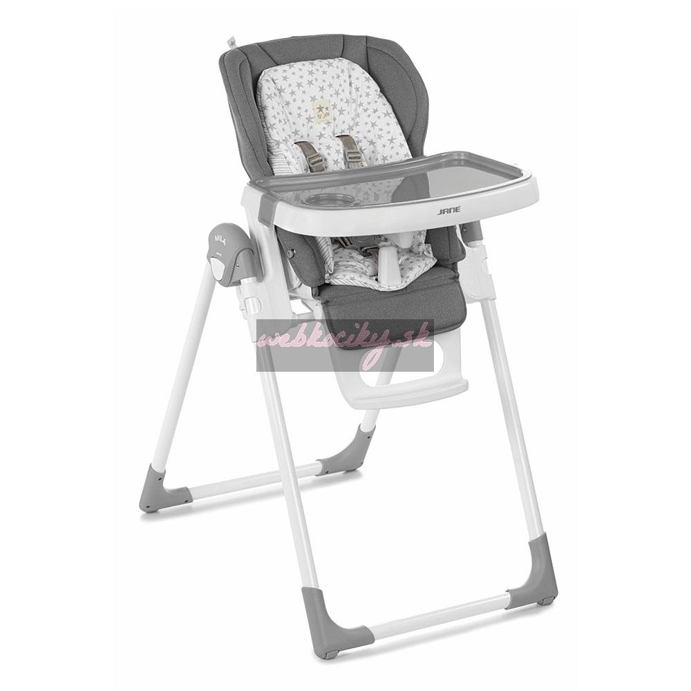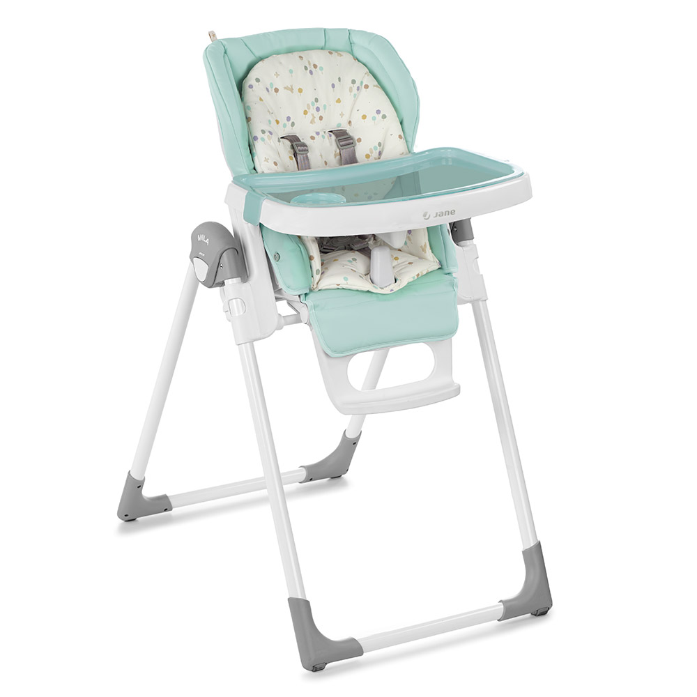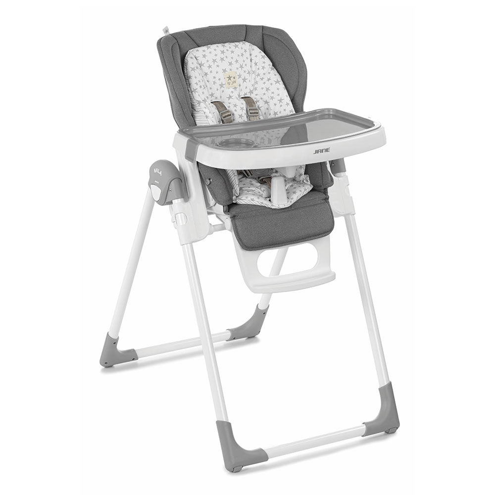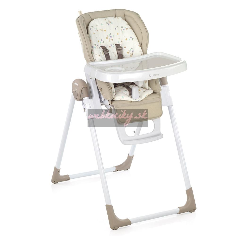 Nová skladacia jedálenská stolička, nastaviteľná do 6 polôh. Je určená pre deti od 0 mesiacov do 3 rokov. Chrbtová opierka nastaviteľná do 6 polôh, výška do 7 polôh a pultík do 2 polôh. Snímateľná mäkká výplň. Odnímateľný jedálenský pultík a kryt jedálenského pultíka.