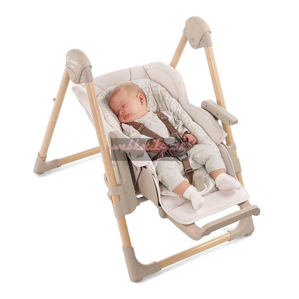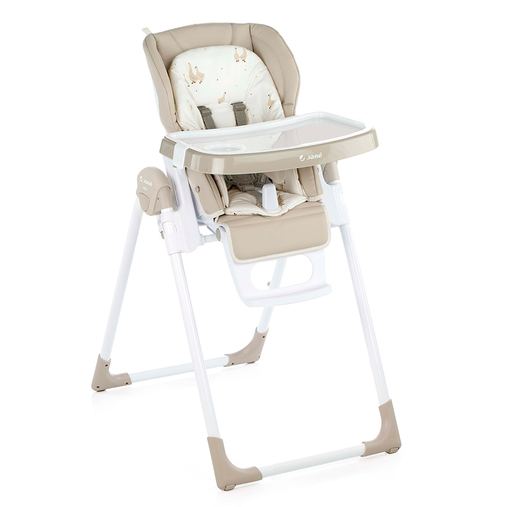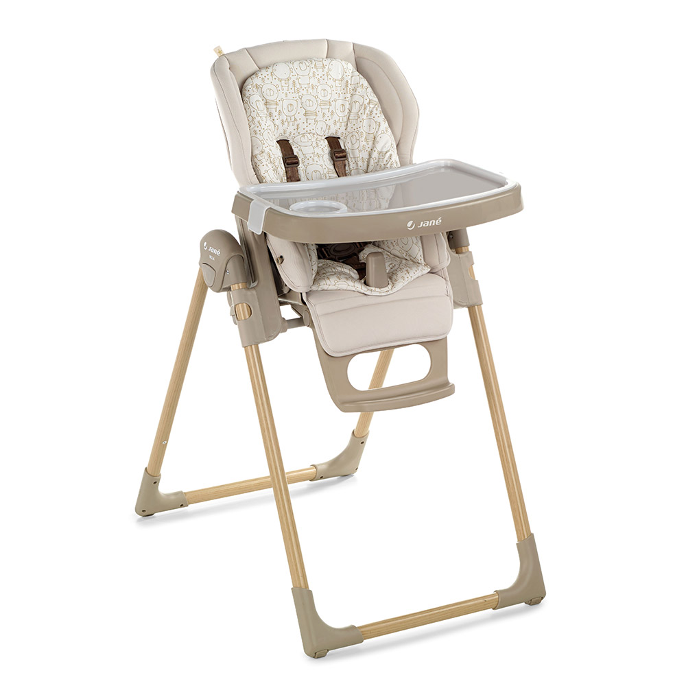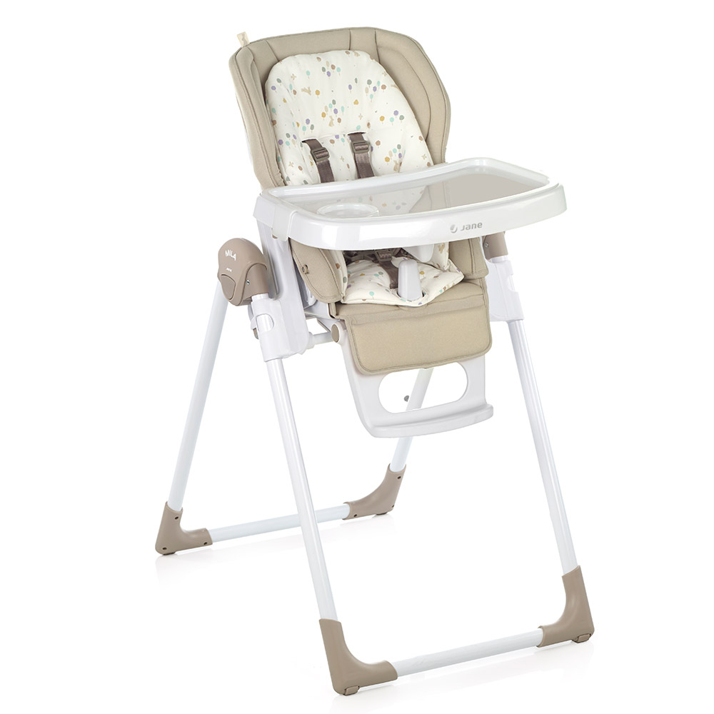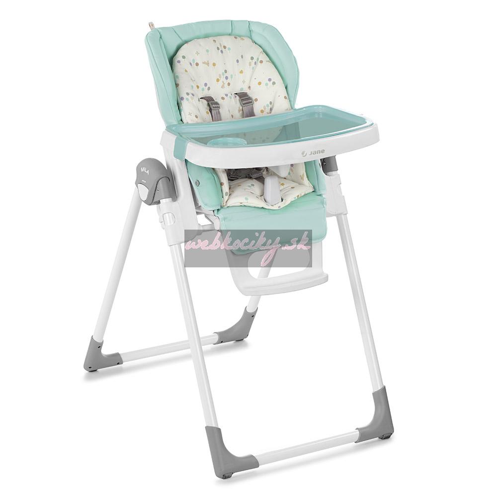 Nová skladacia jedálenská stolička, nastaviteľná do 6 polôh. Je určená pre deti od 0 mesiacov do 3 rokov. Chrbtová opierka nastaviteľná do 6 polôh, výška do 7 polôh a pultík do 2 polôh. Snímateľná mäkká výplň. Odnímateľný jedálenský pultík a kryt jedálenského pultíka.