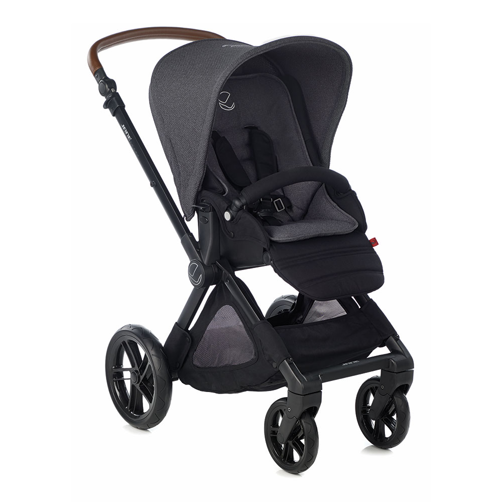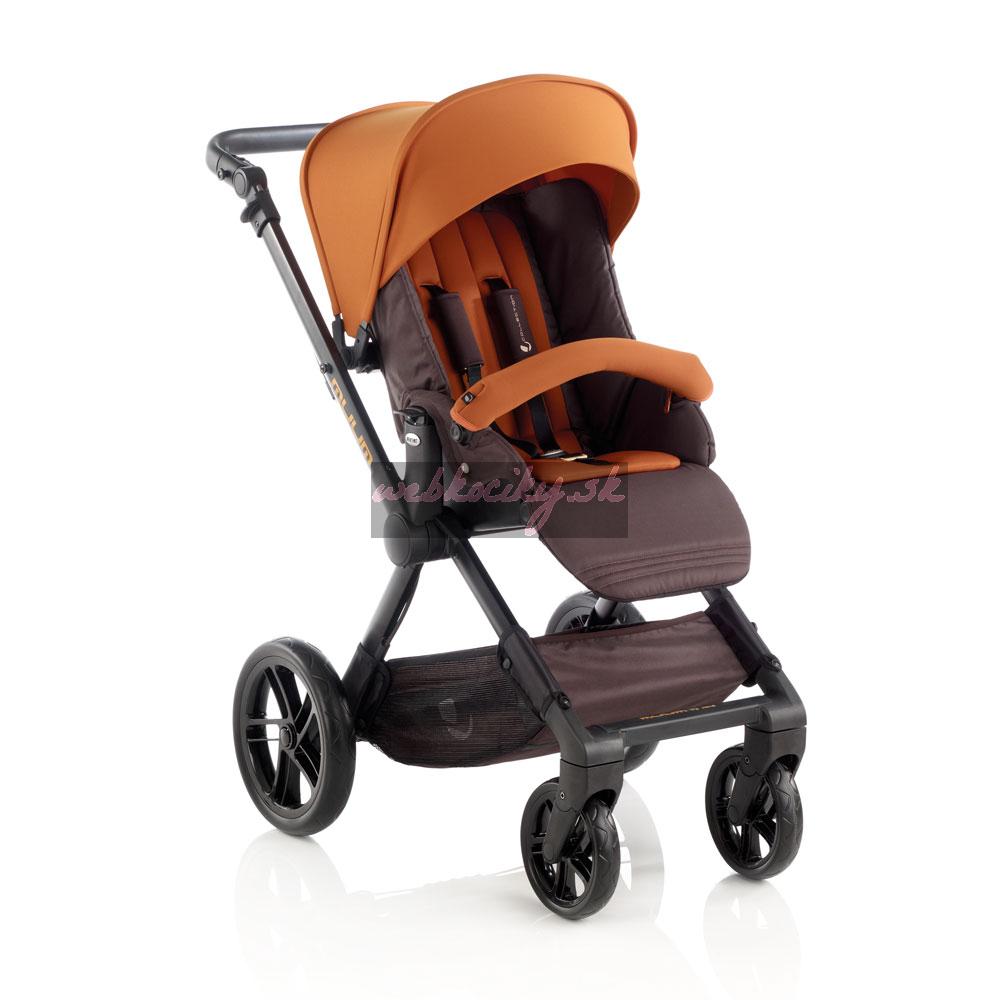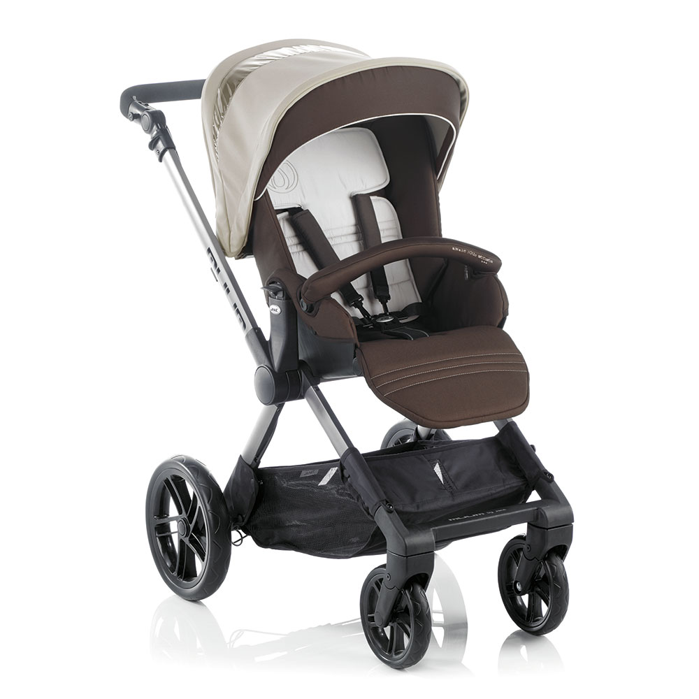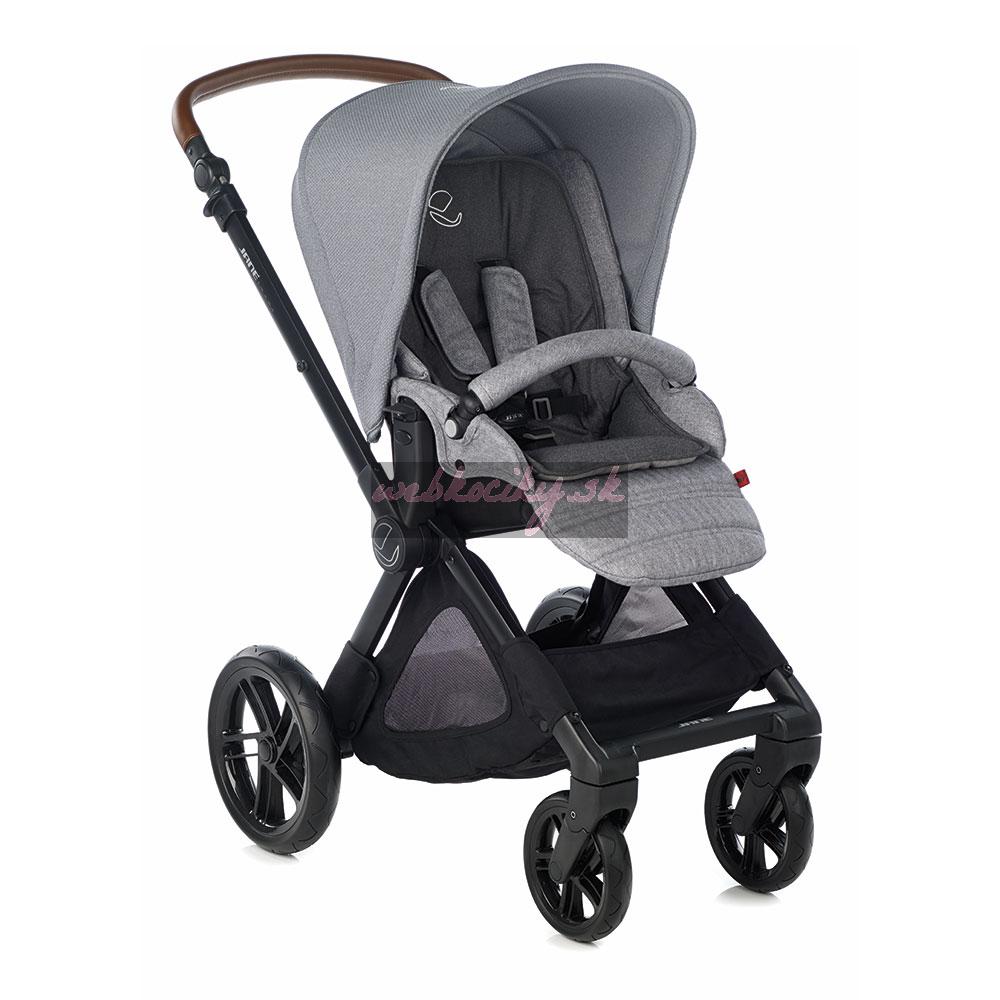 J Súčasťou je strieška a priestranný nákupný košík. Vonkajší materiál a strieška je odolná voči dažďu a vetru. Vnútorný materiál, s ktorým príde dieťa do styku je z priedušného materiálu.