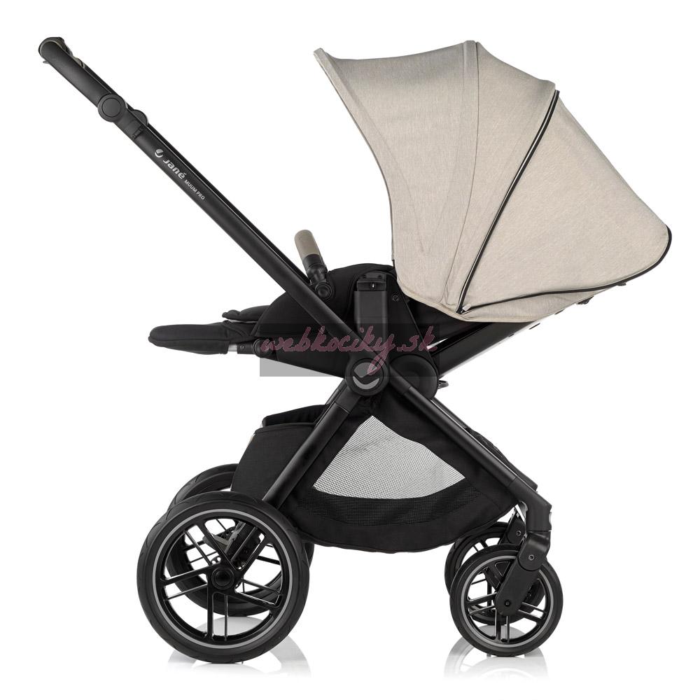 Kočík JANÉ MUUM Pro je univerzálny športový kočík, na konštrukciu ktorého si môžete nakliknúť bez adaptérov Micro Pro vaničku (skladaciu vaničku, nie je v cene), autosedačku KOOS iSize R1 (nie je v cene).