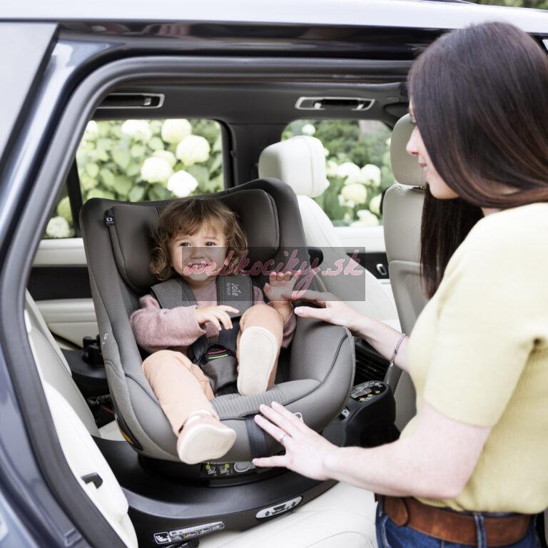 - úžasne jednoduché otáčanie pomocou technológie Simple Swivel™ s perfektne dostupným tlačidlom na odistenie otočenia, ktoré zvládnete len jednou rukou a jednoducho potom usadíte alebo vyberiete dieťa zo sedačky