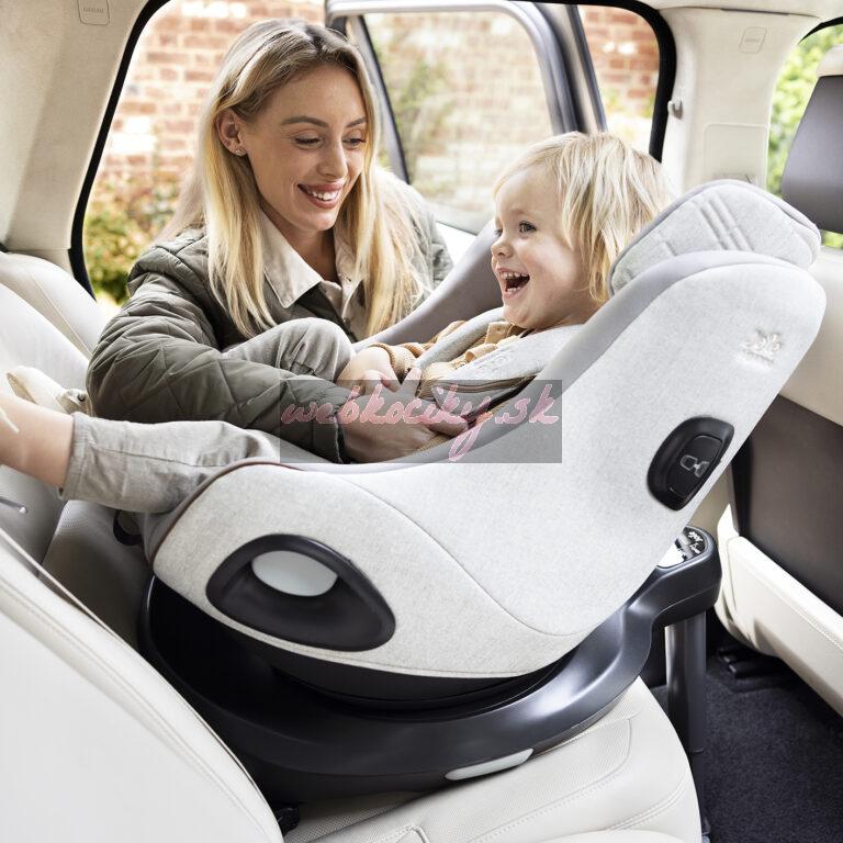 - úžasne jednoduché otáčanie pomocou technológie Simple Swivel™ s perfektne dostupným tlačidlom na odistenie otočenia, ktoré zvládnete len jednou rukou a jednoducho potom usadíte, alebo vyberiete dieťa zo sedačky