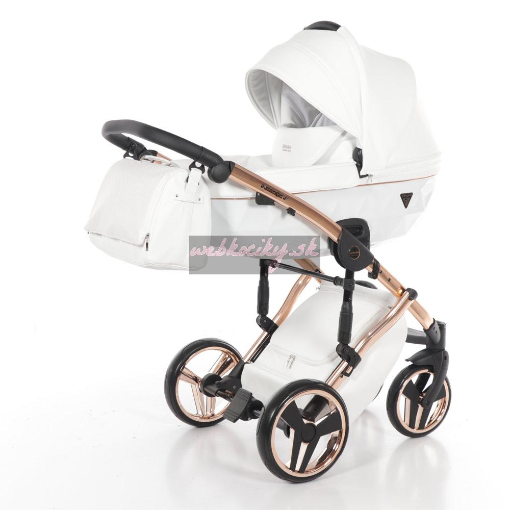 Designovo pôsobivý kočík Junama poteší nie len krásnym vzhľadom. Priestranný a mimoriadne mäkko odpružený kočík na gelových kolesách s uživeteľsky príjemnými vlastnosťami.