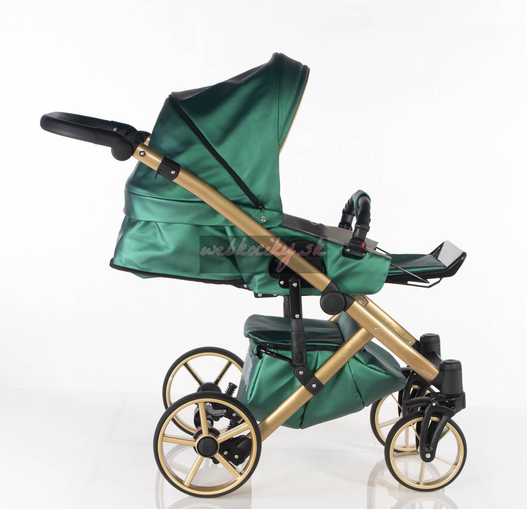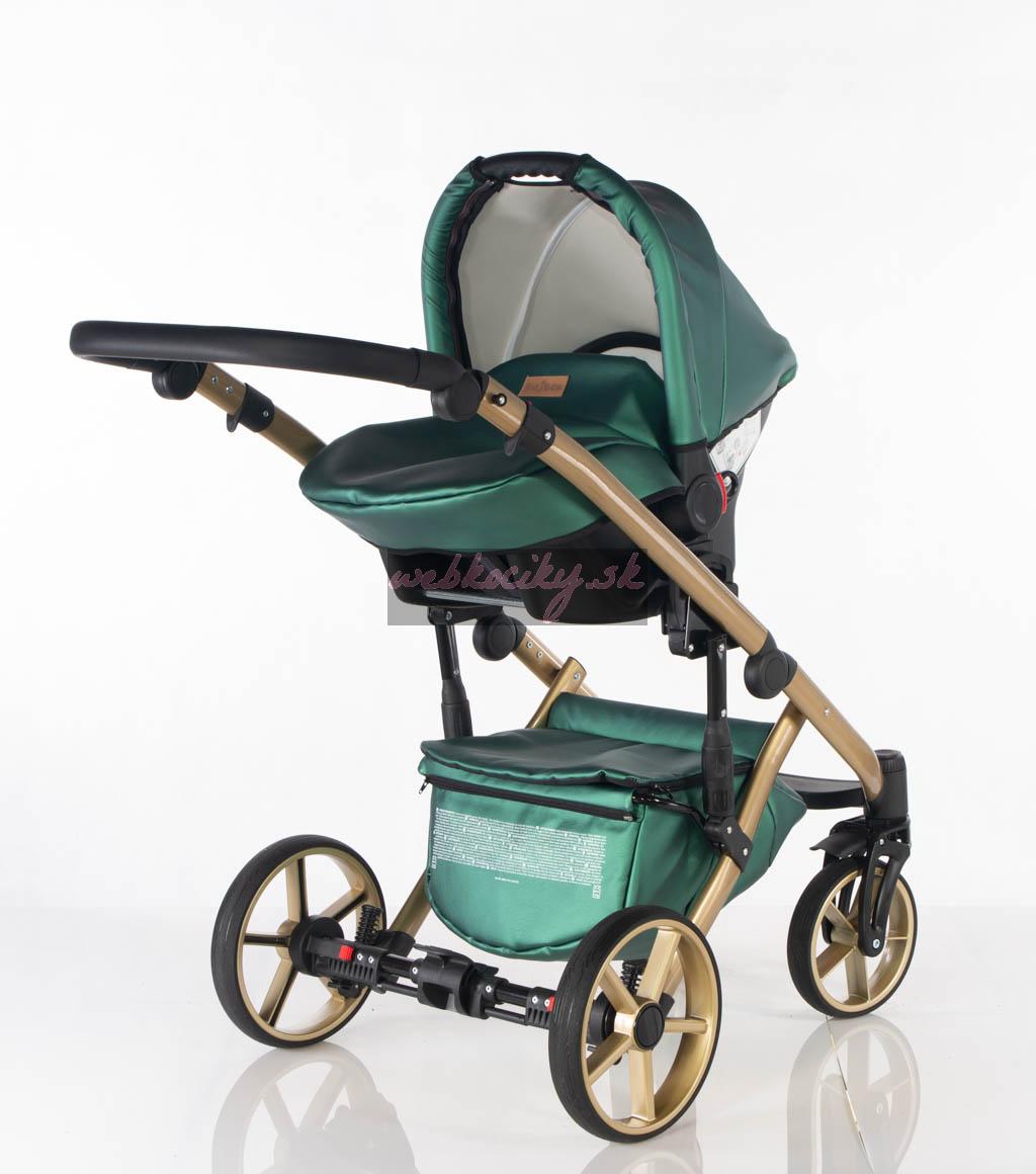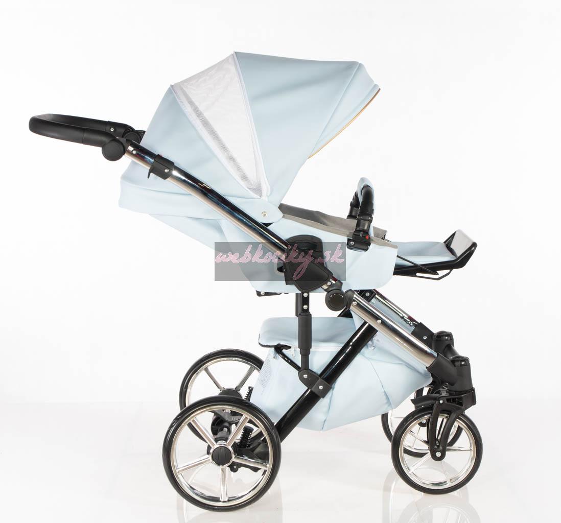 - vnútro kočíka tvorí čalúnenie vo farbe kočíka z kvalitnej bavlny s vyberateľným bavlneným matracom,