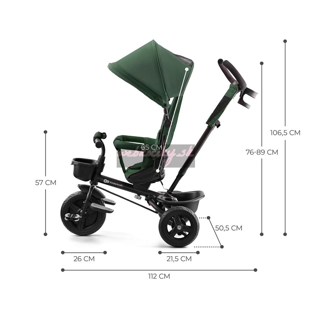 Trojkolka AVEO od spoločnosti Kinderkraft je výrobok vhodný pre deti od 9 mesiacov do približne 5 rokov. Je vybavená odolnými kolieskami, ktoré nie je potrebné nafukovať. Ďalšou výhodou detskej trojkolky AVEO je otočné sedadlo, ktoré umožňuje nastavenie v smere alebo proti smeru jazdy. Ide o výrobok, ktorý rastie spolu s dieťaťom, skladacia konštrukcia a modulárna konštrukcia umožňujú tento bicykel ľubovoľne pretvárať a prispôsobovať veku dieťaťa.